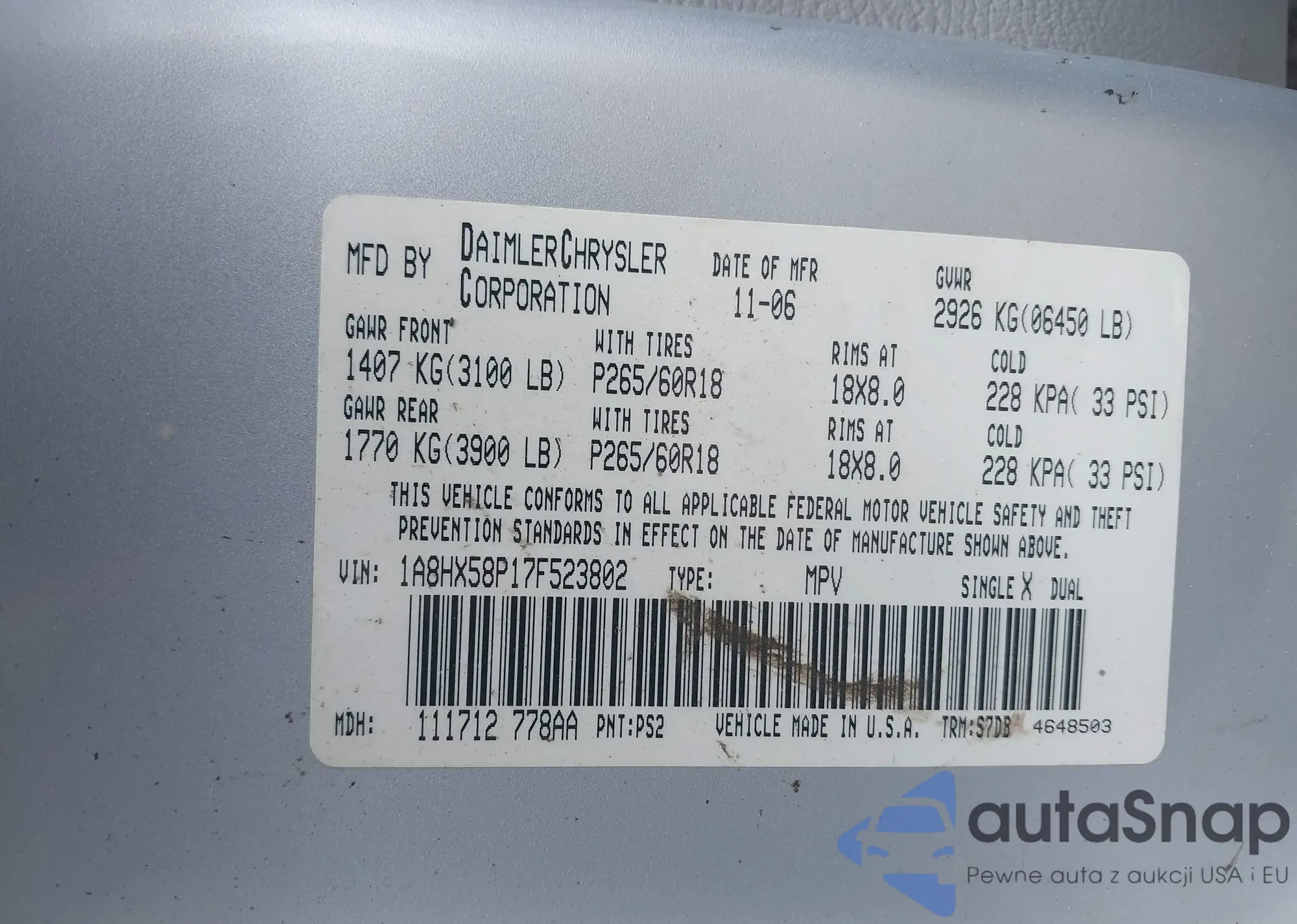 • VIN 1G1PG5SB3F7265817