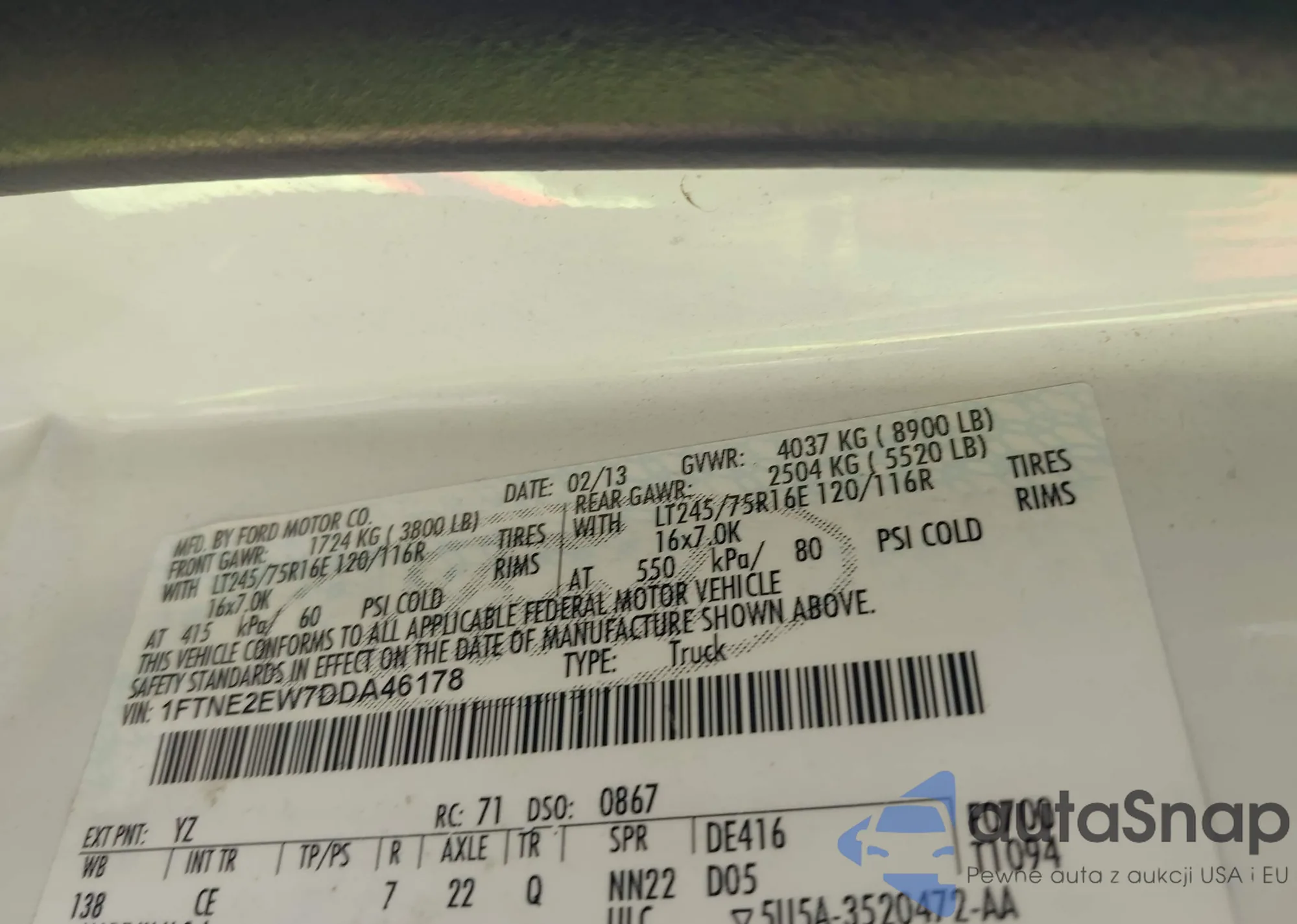 • VIN 1FTNE2EW7DDA46178