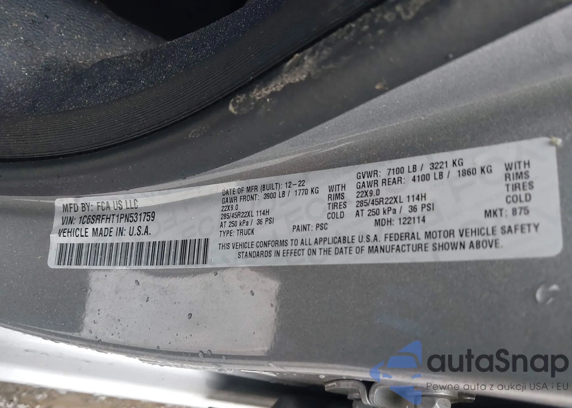 LOT: 42323882 VIN: 1C6SRFHT1PN531759