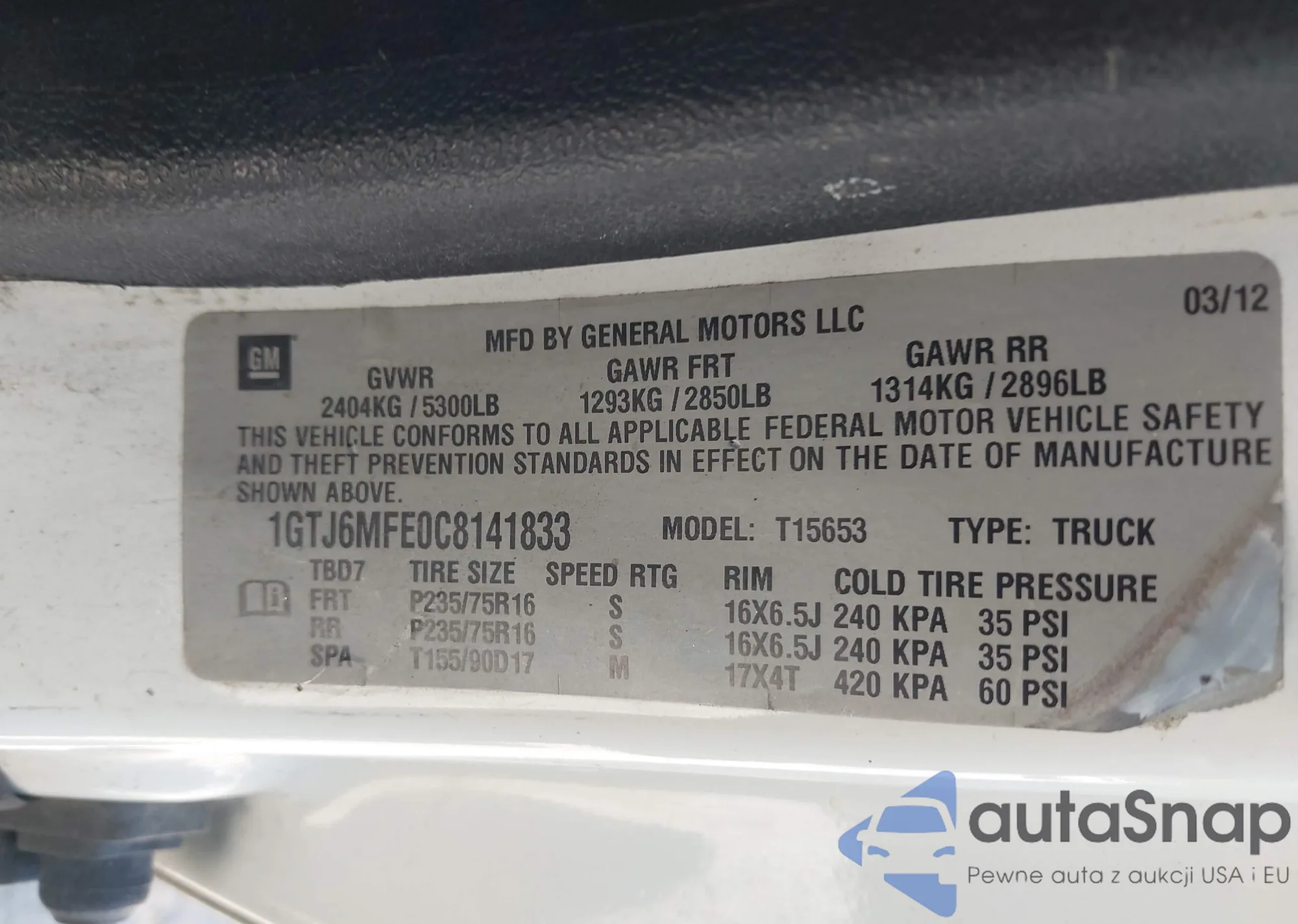 LOT: 42414039 VIN: 1GTJ6MFE0C8141833