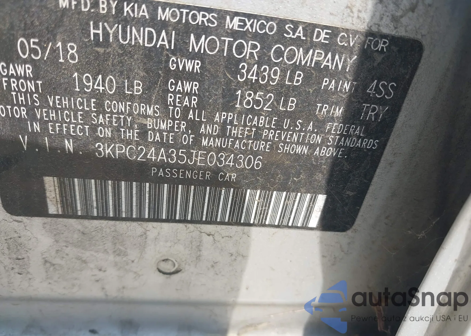 • VIN 3KPC24A35JE034306