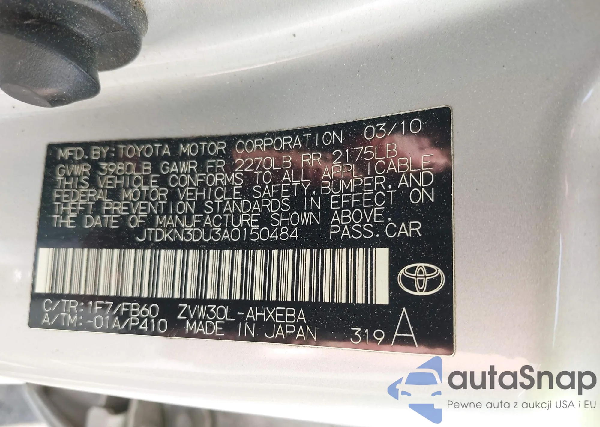 • VIN 1HGCP2F35AA036057