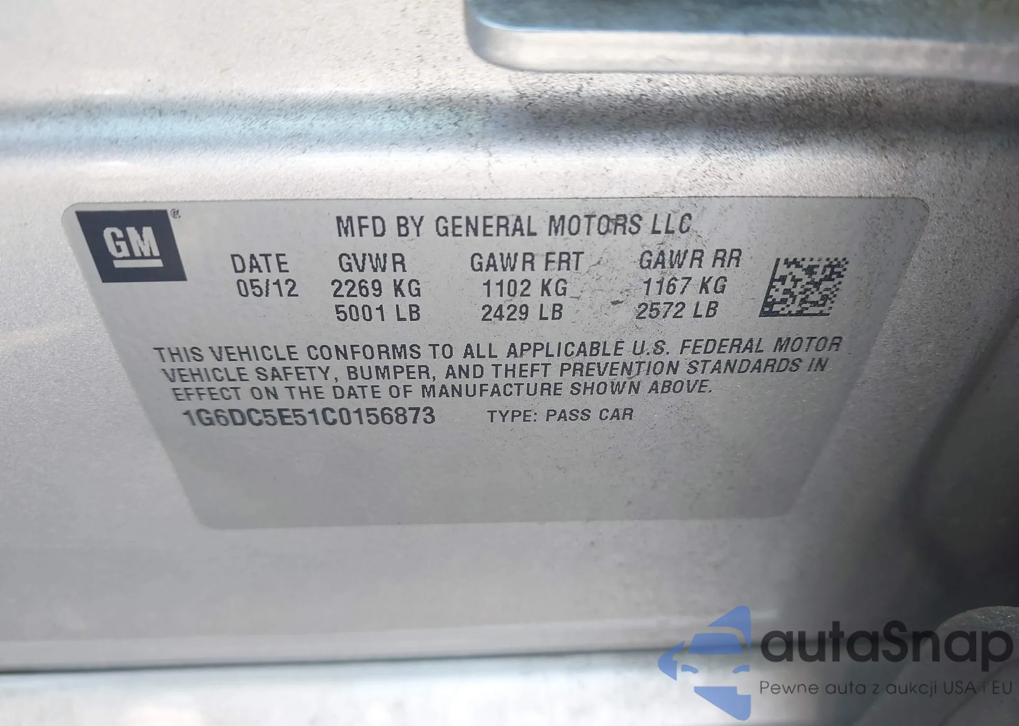 • VIN 1G6DC5E51C0156873