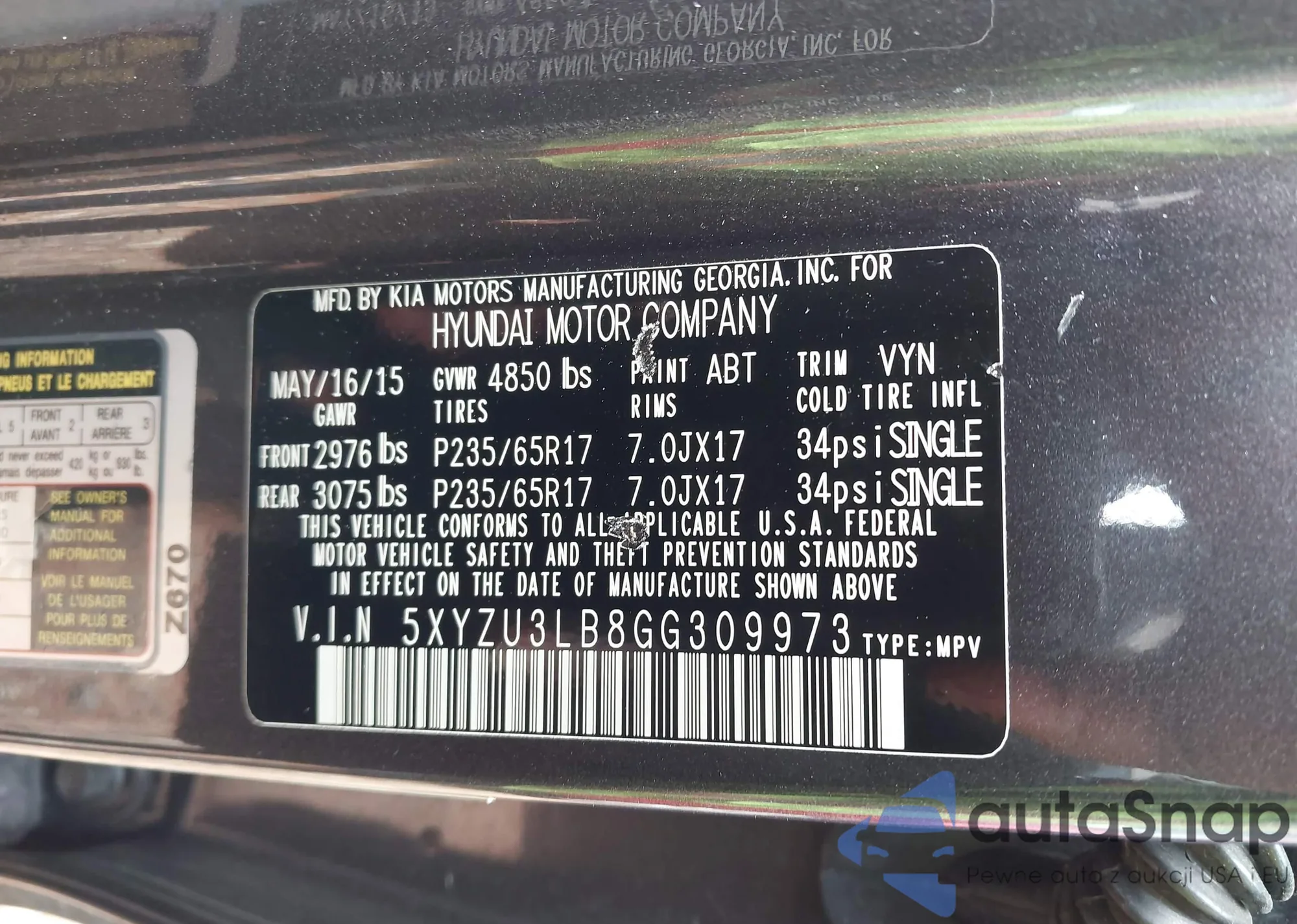 • VIN 5XYZU3LB8GG309973