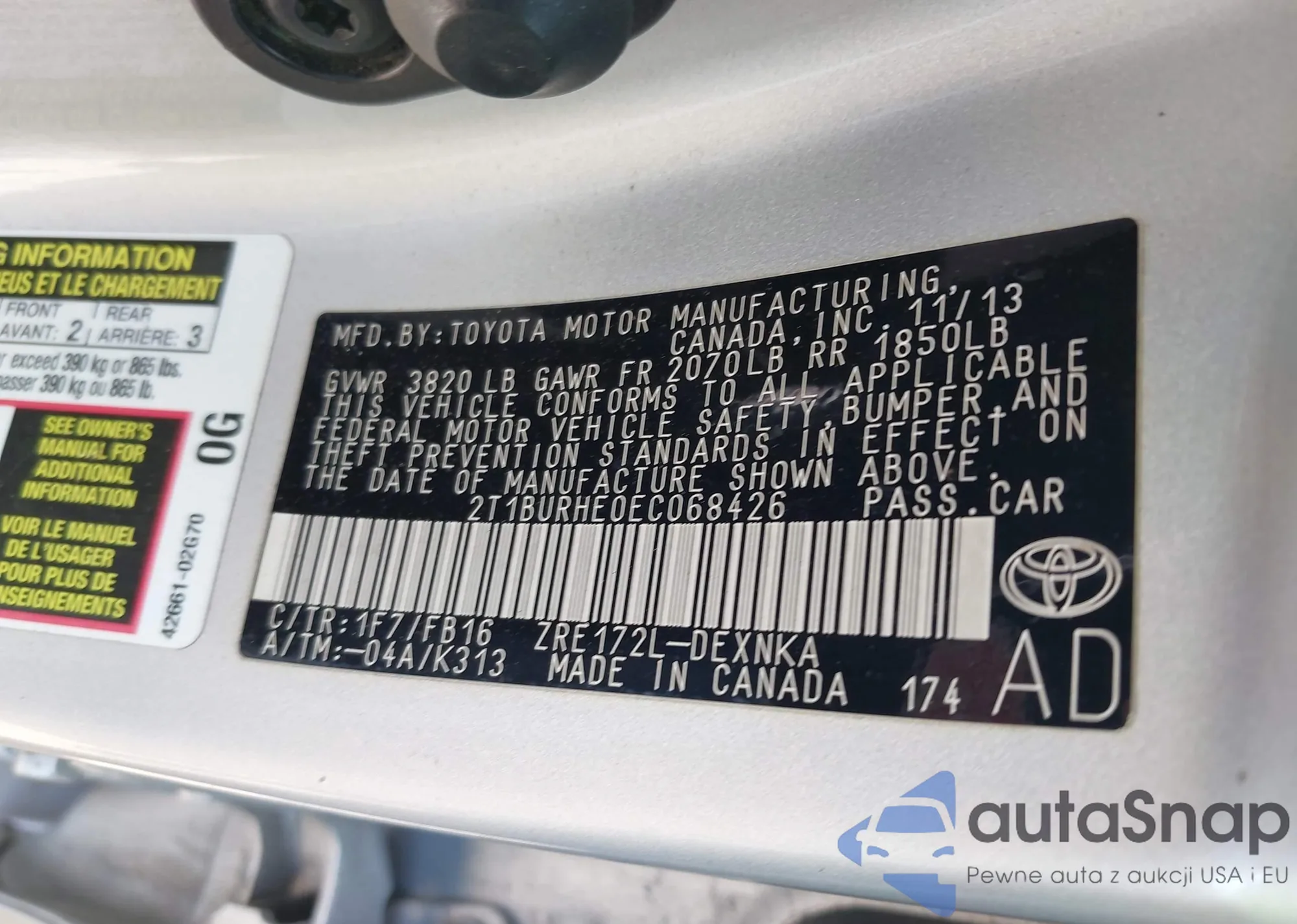 • VIN 2T1BURHE0EC068426