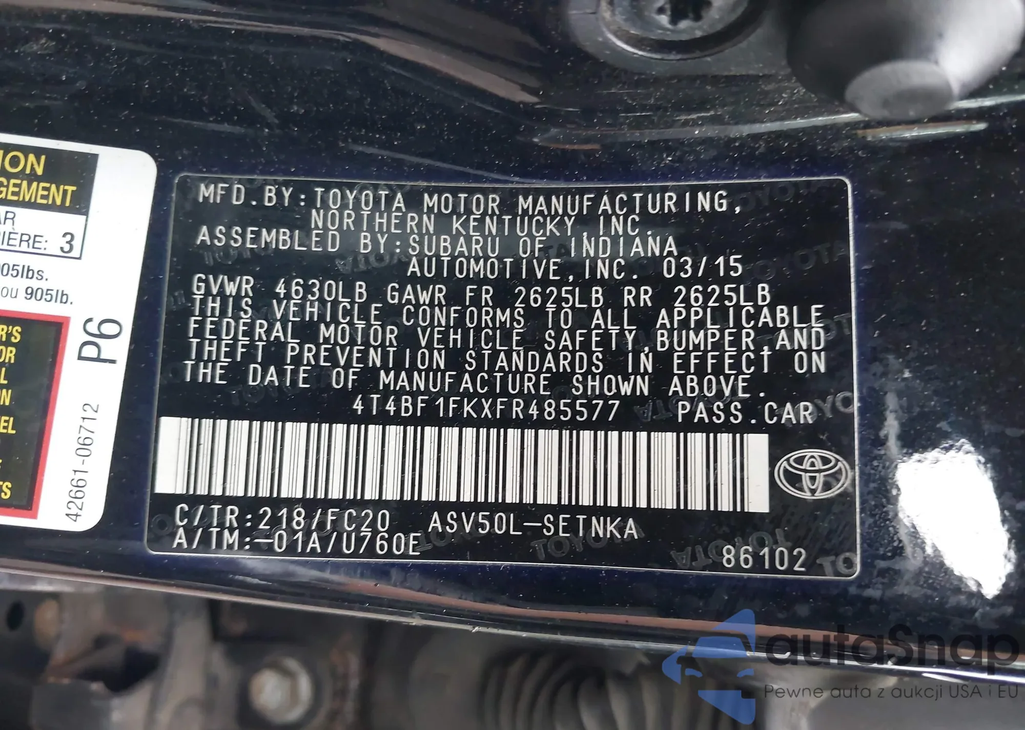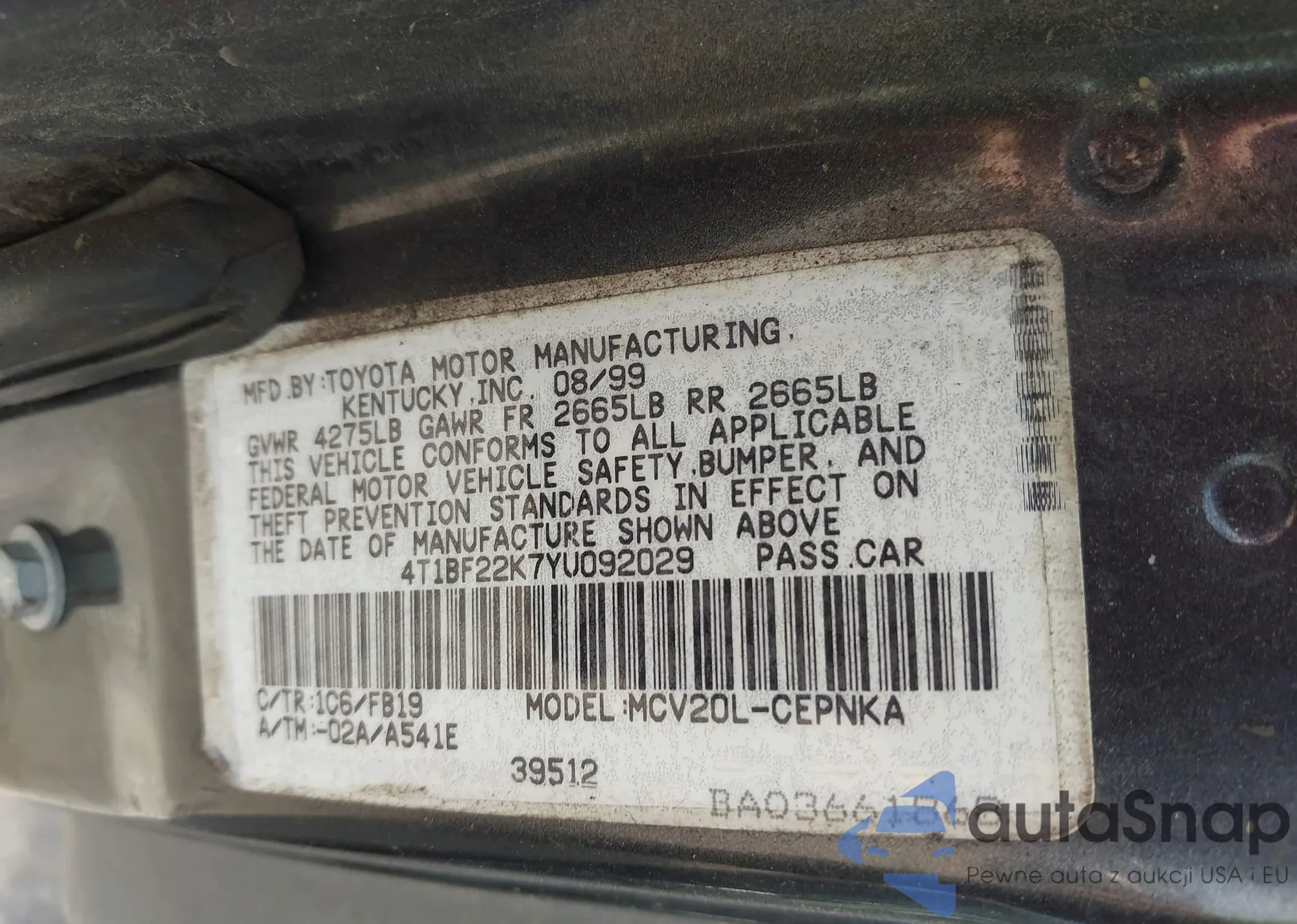 • VIN 4T1BF22K7YU092029