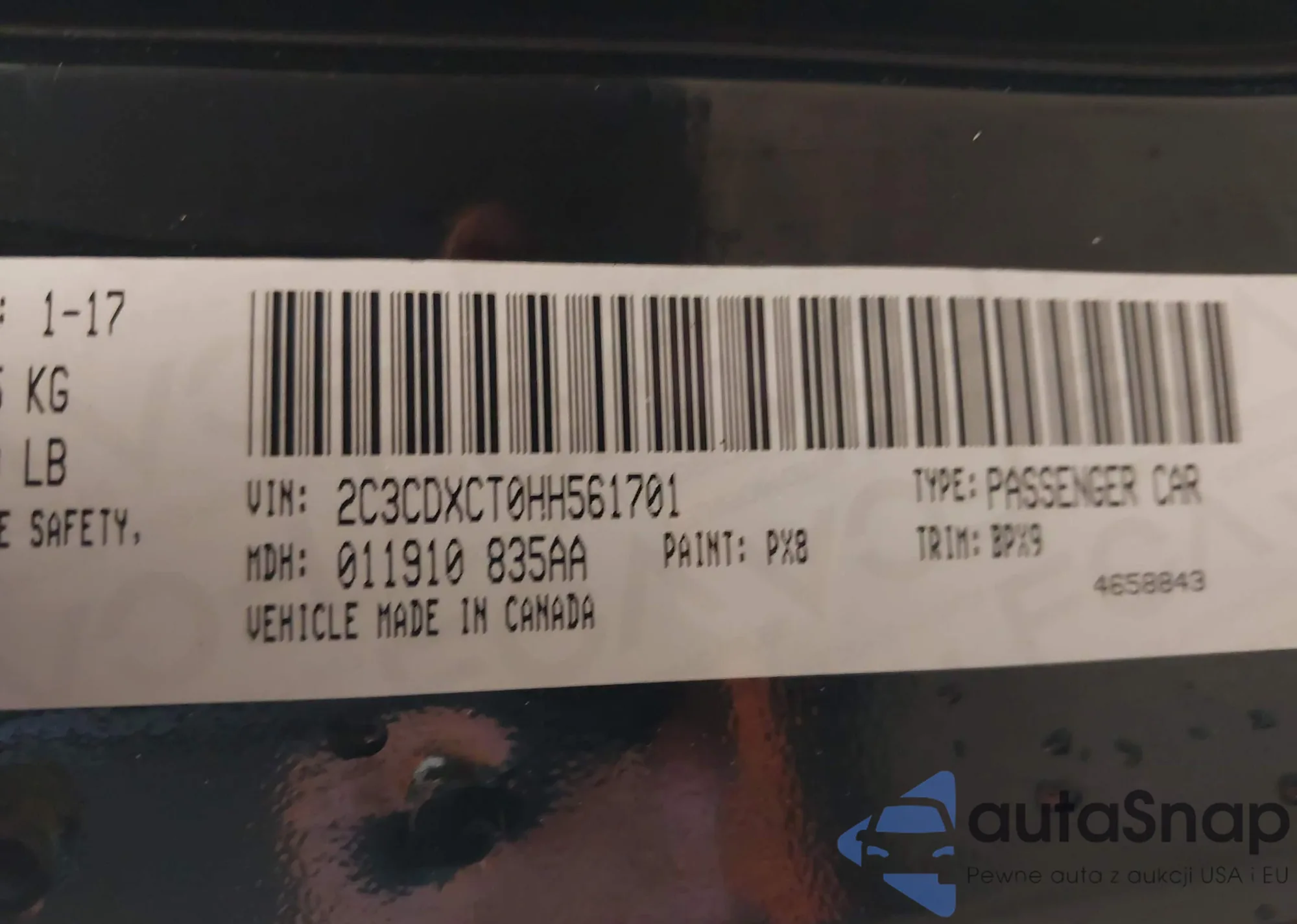 • VIN 2C3CDXCT0HH561701
