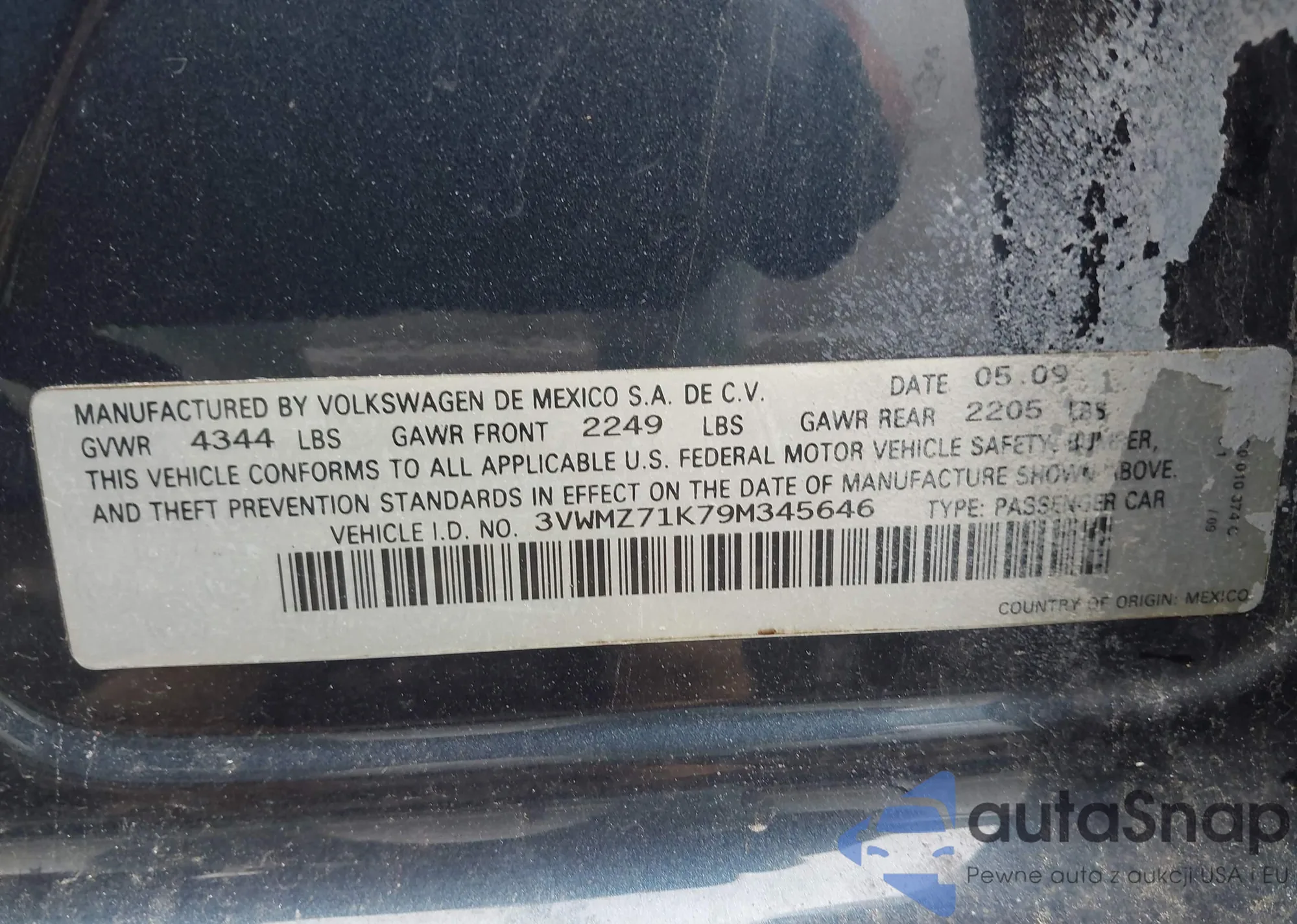 • VIN 3VWMZ71K79M345646