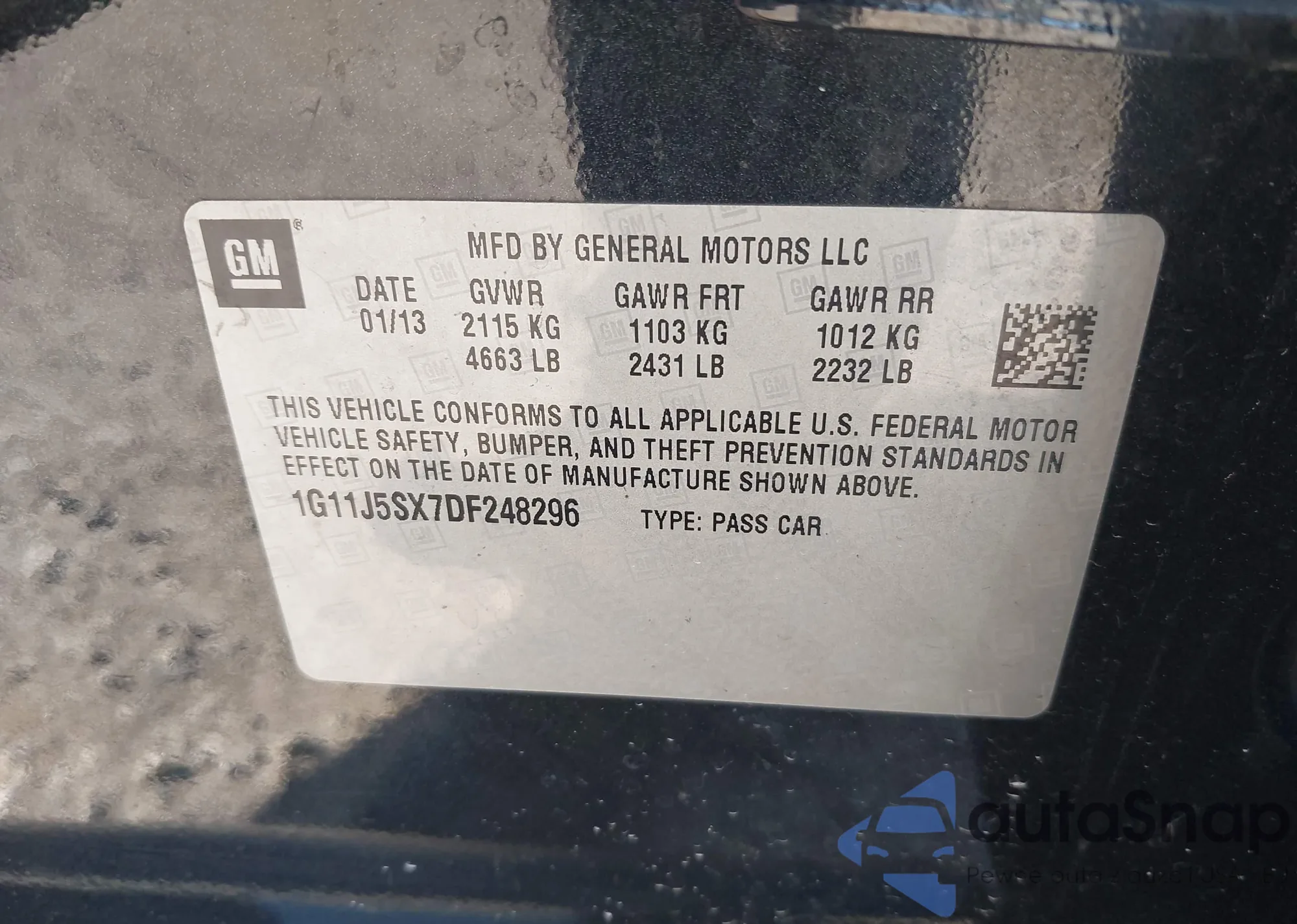 LOT: 42298476 VIN: 1G11J5SX7DF248296