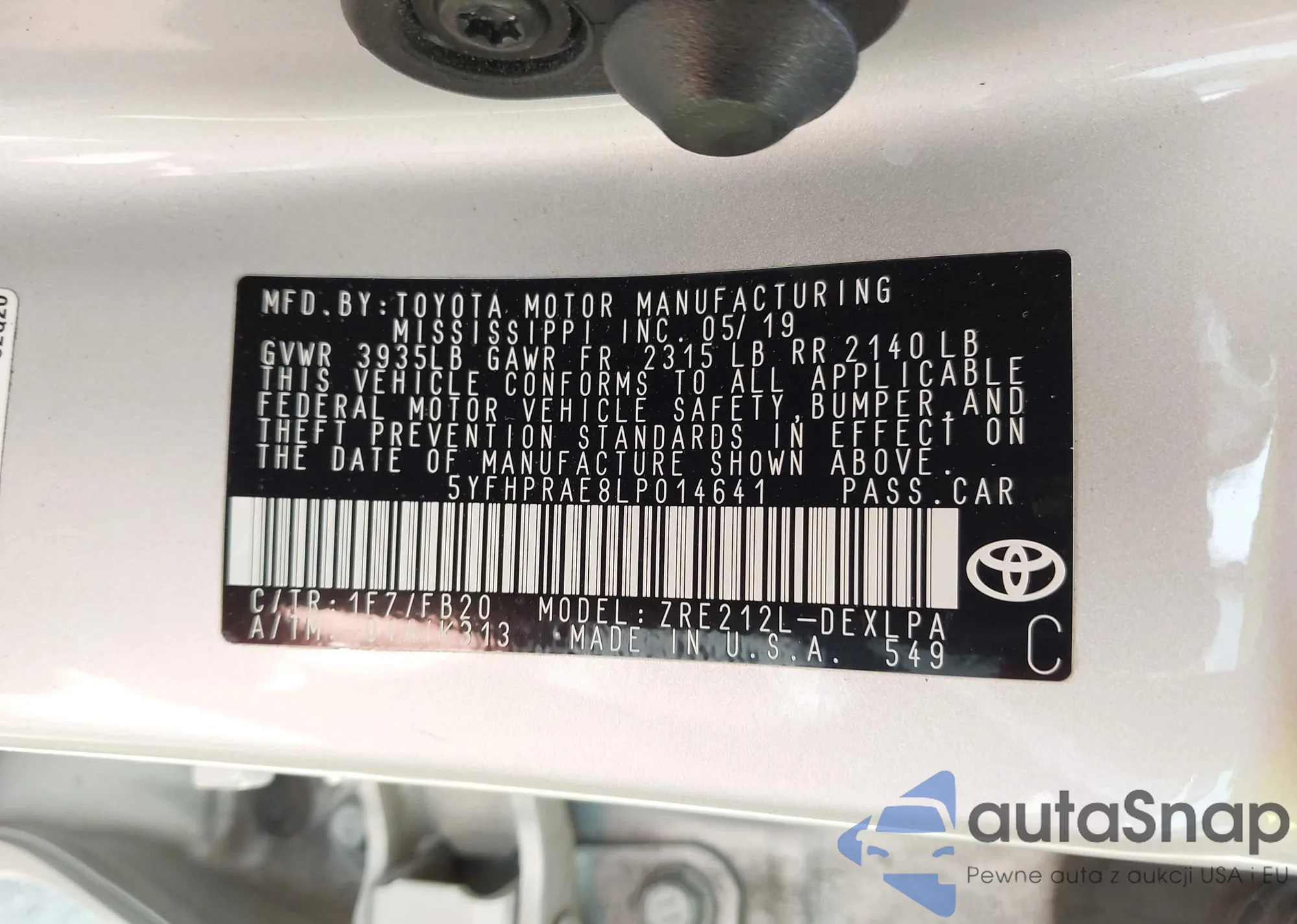 • VIN 5YFHPRAE8LP014641