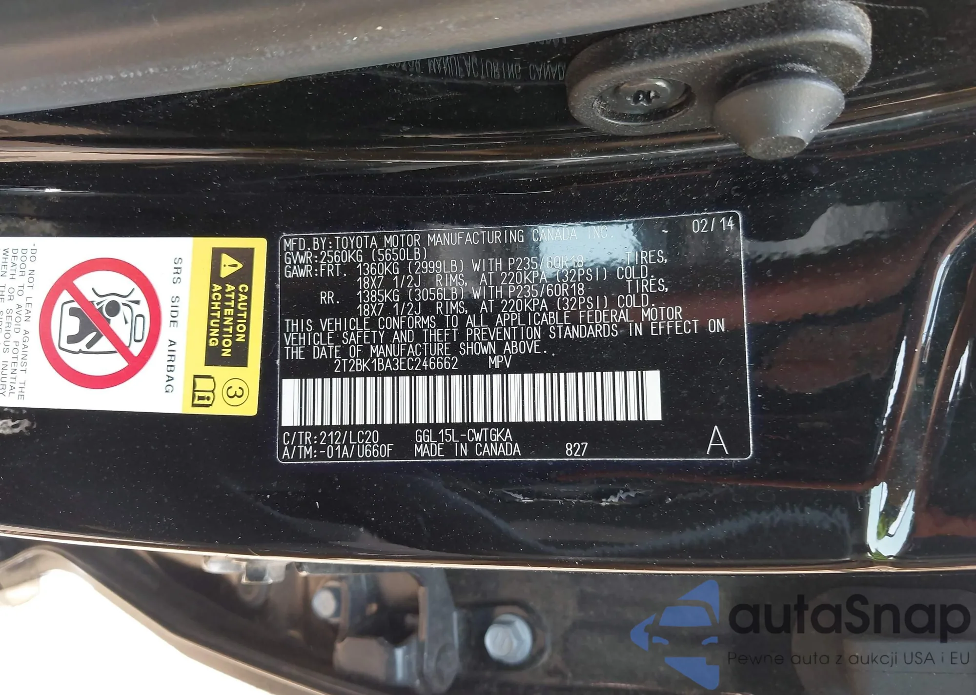 • VIN 2T2BK1BA3EC246662