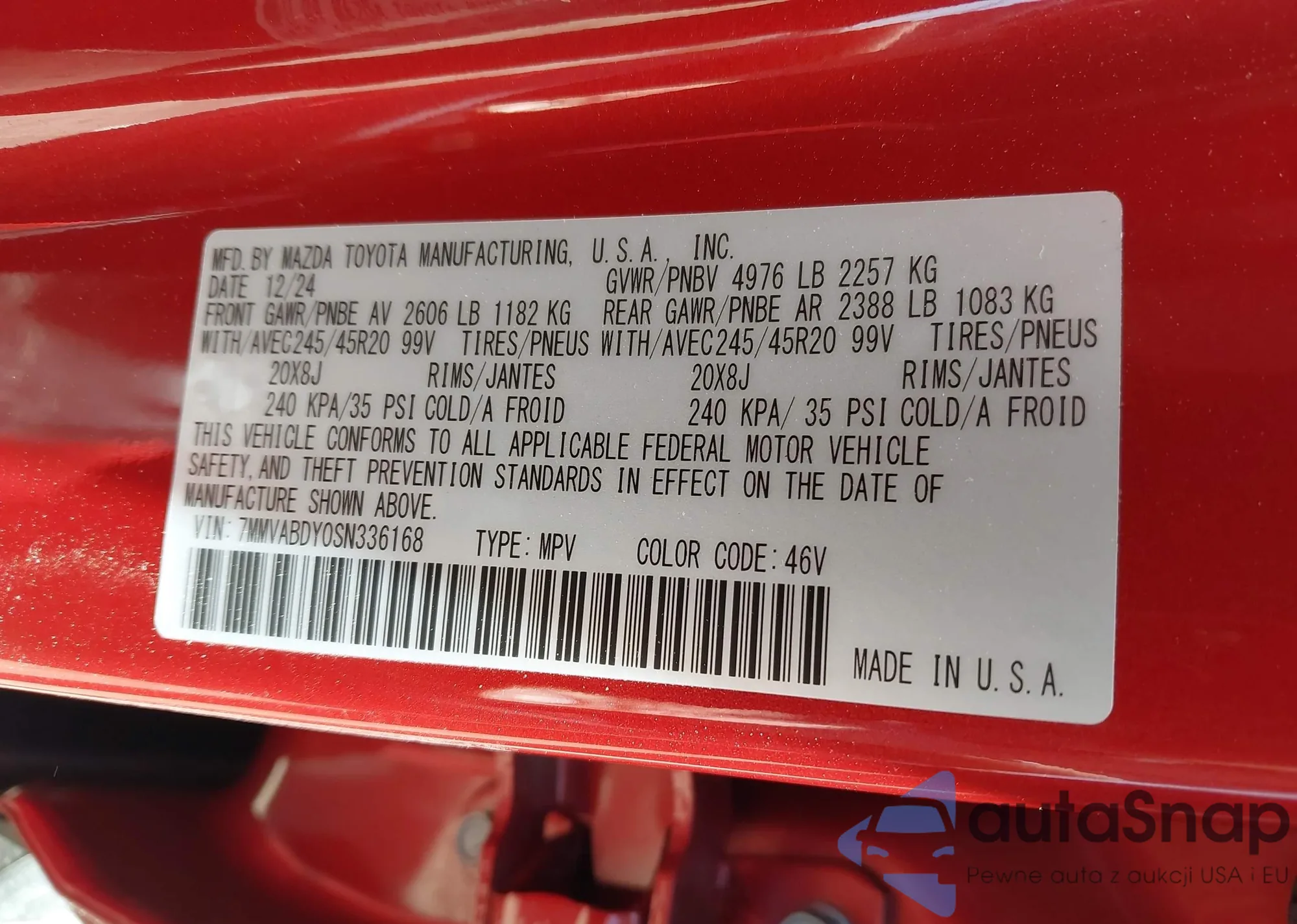 LOT: 42130655 VIN: 7MMVABDY0SN336168