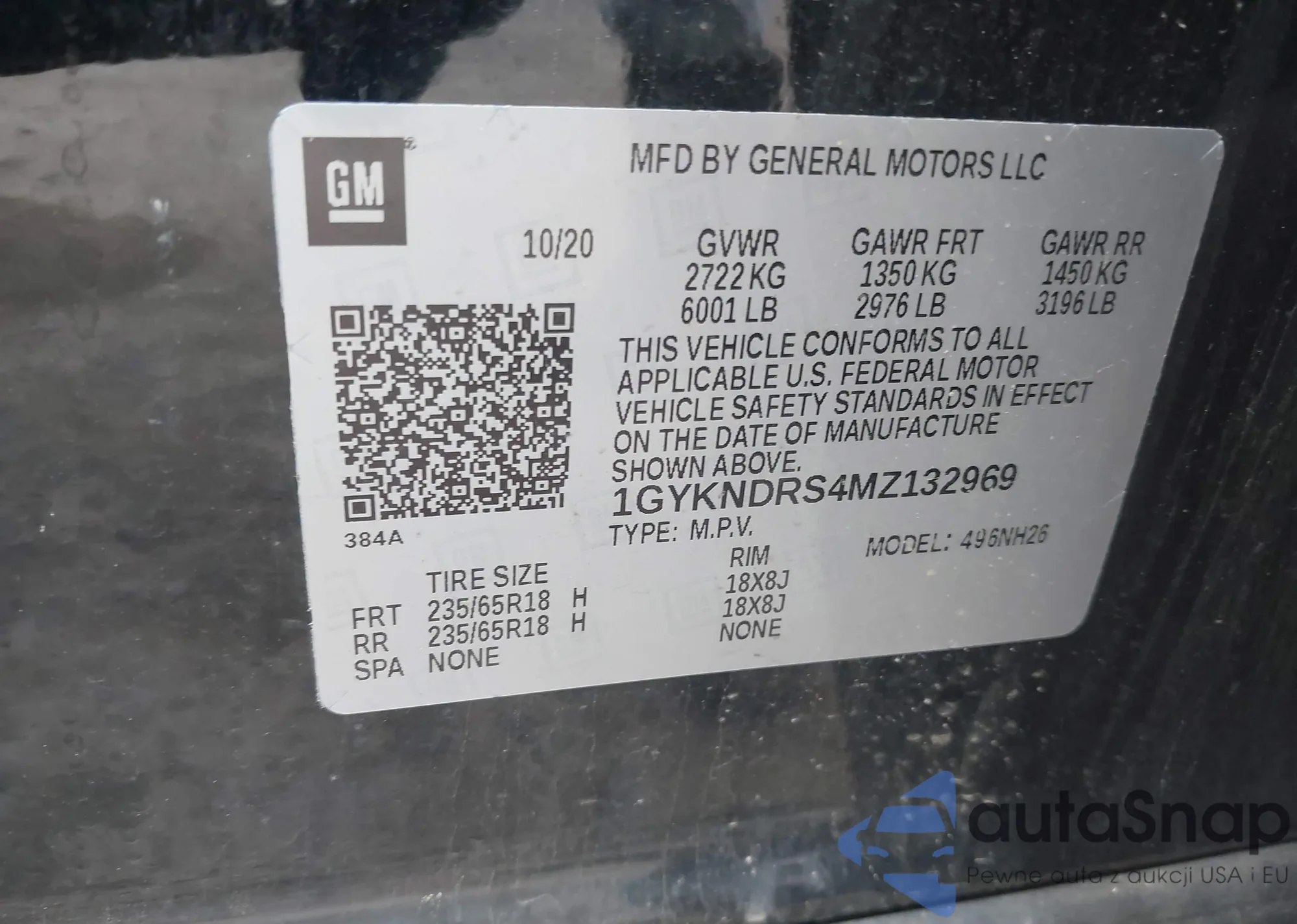 LOT: 42158525 VIN: 1GYKNDRS4MZ132969