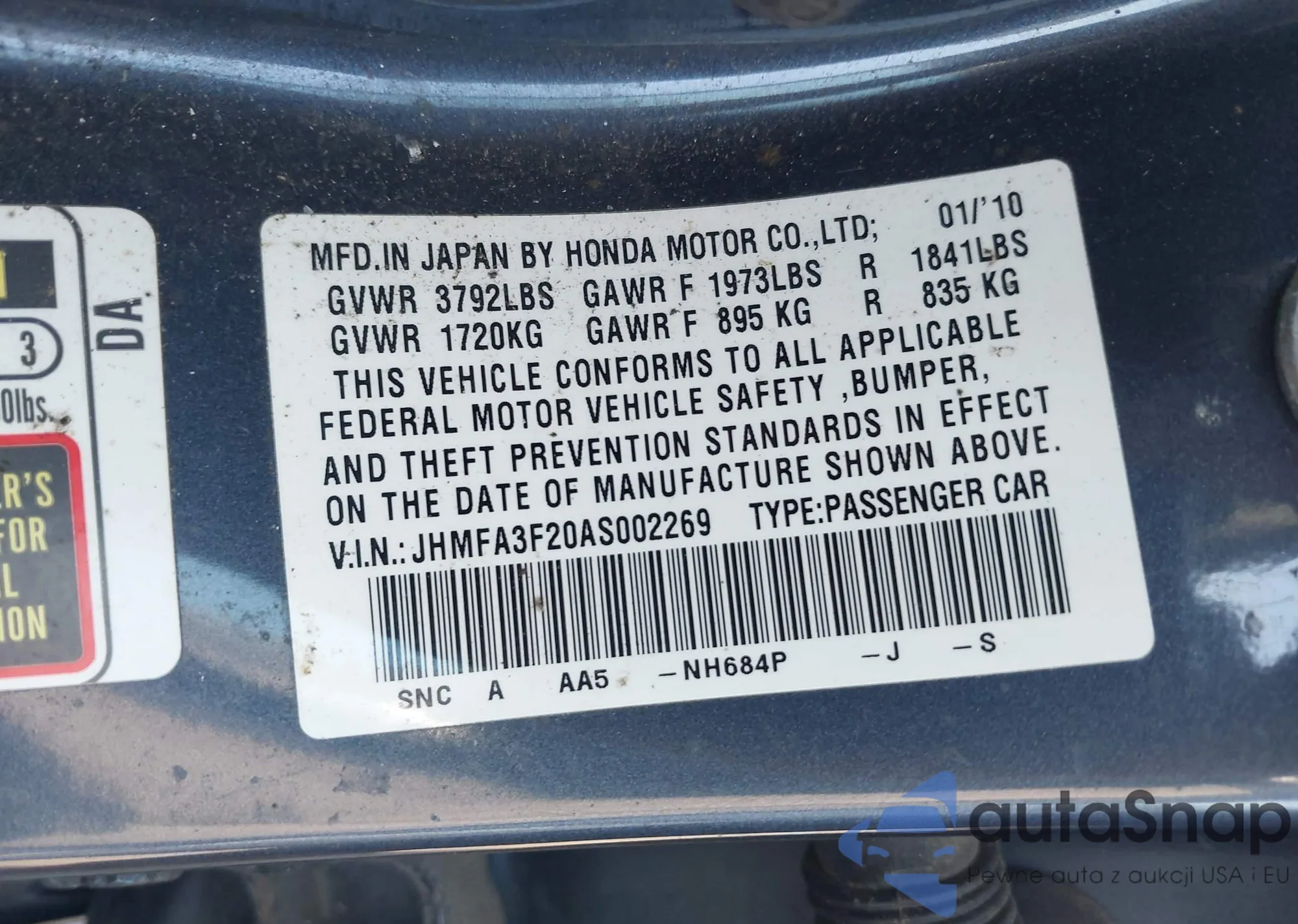 • VIN JHMFA3F20AS002269