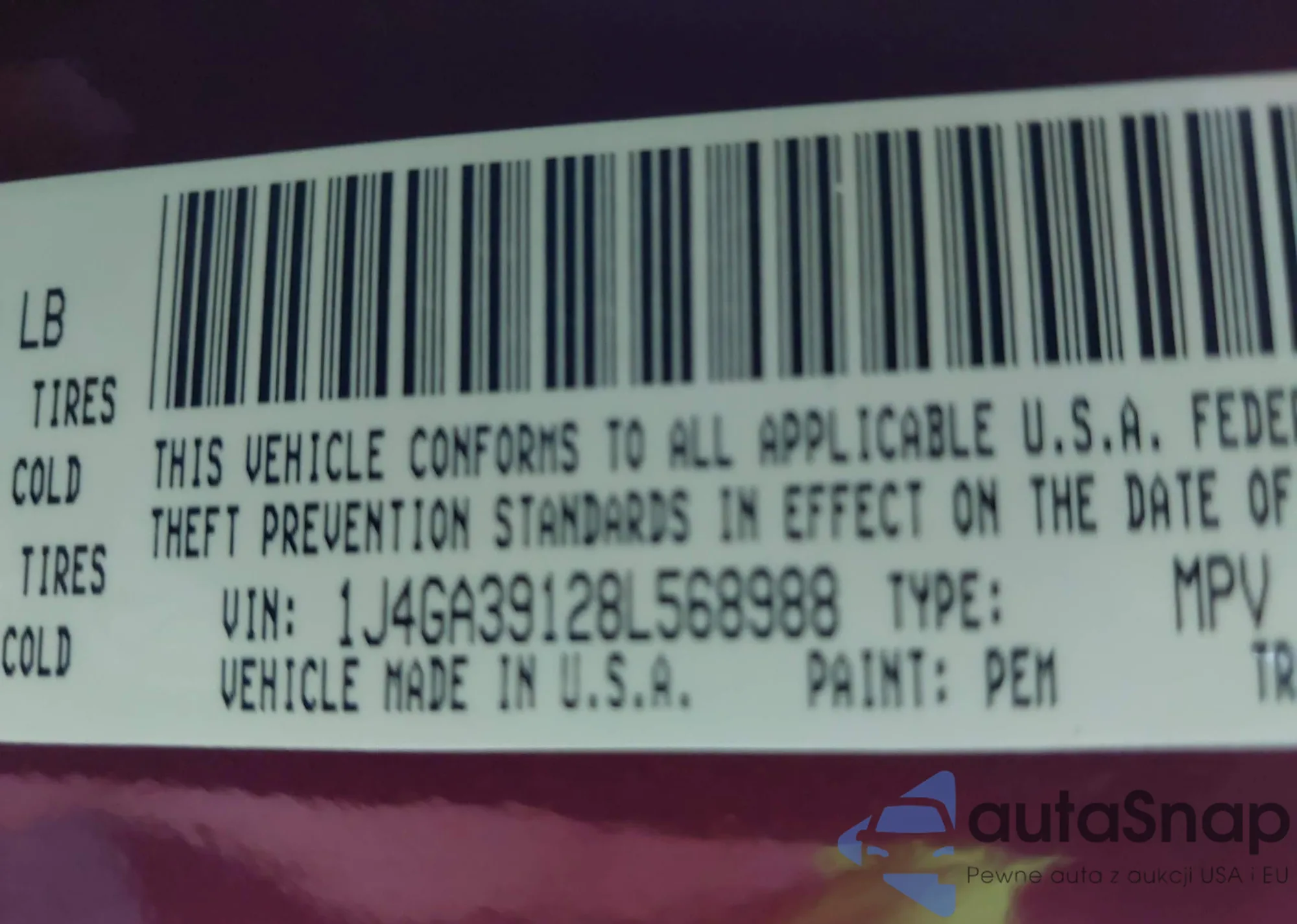 LOT: 42445403 VIN: 1J4GA39128L568988