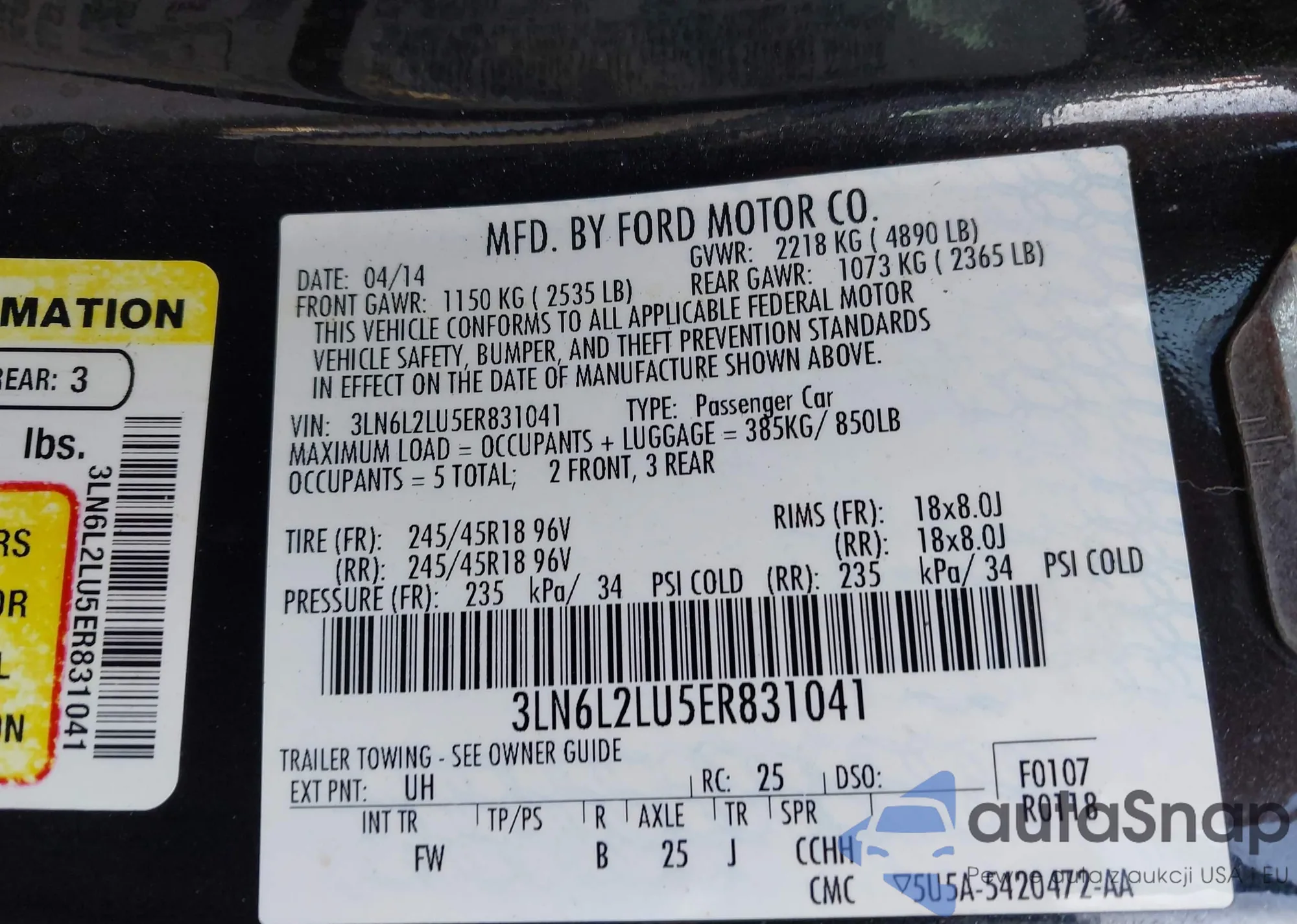 LOT: 42144051 VIN: WA1ECCFS9HR005867