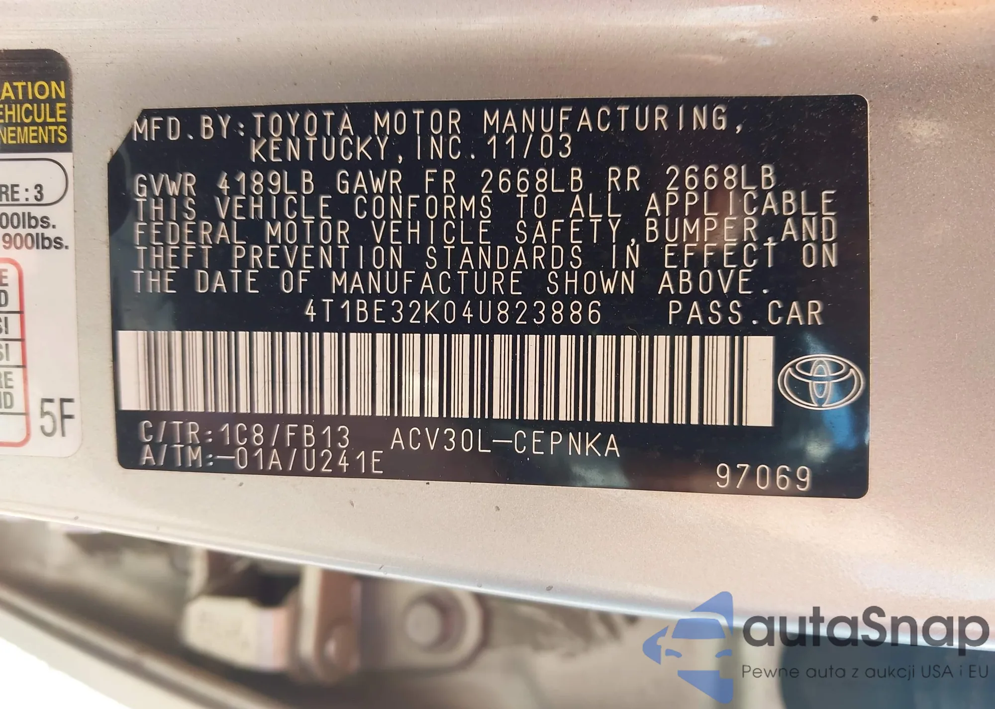 • VIN 4T1FZ1FBXLU040786