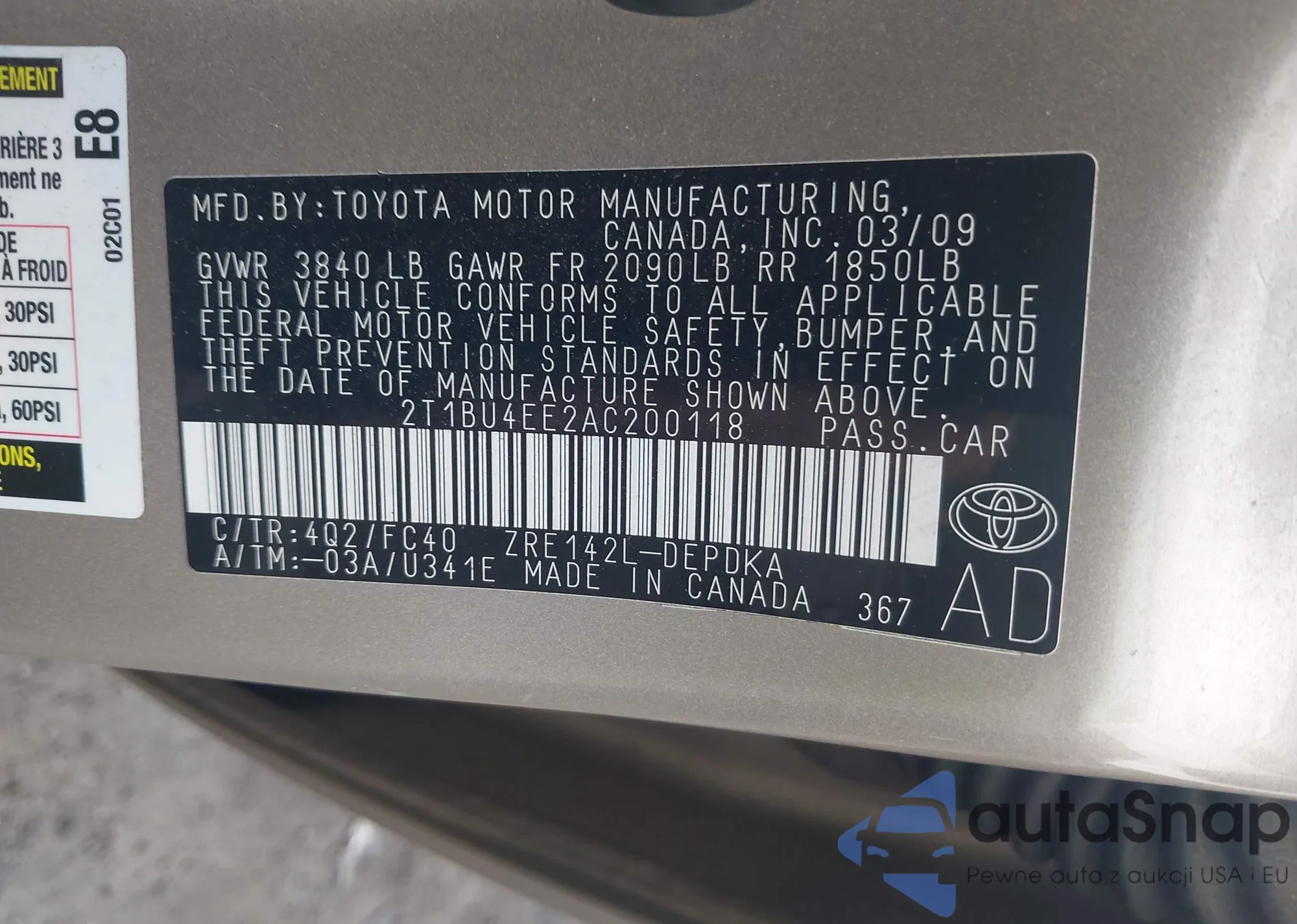 • VIN 2T1BU4EE2AC200118