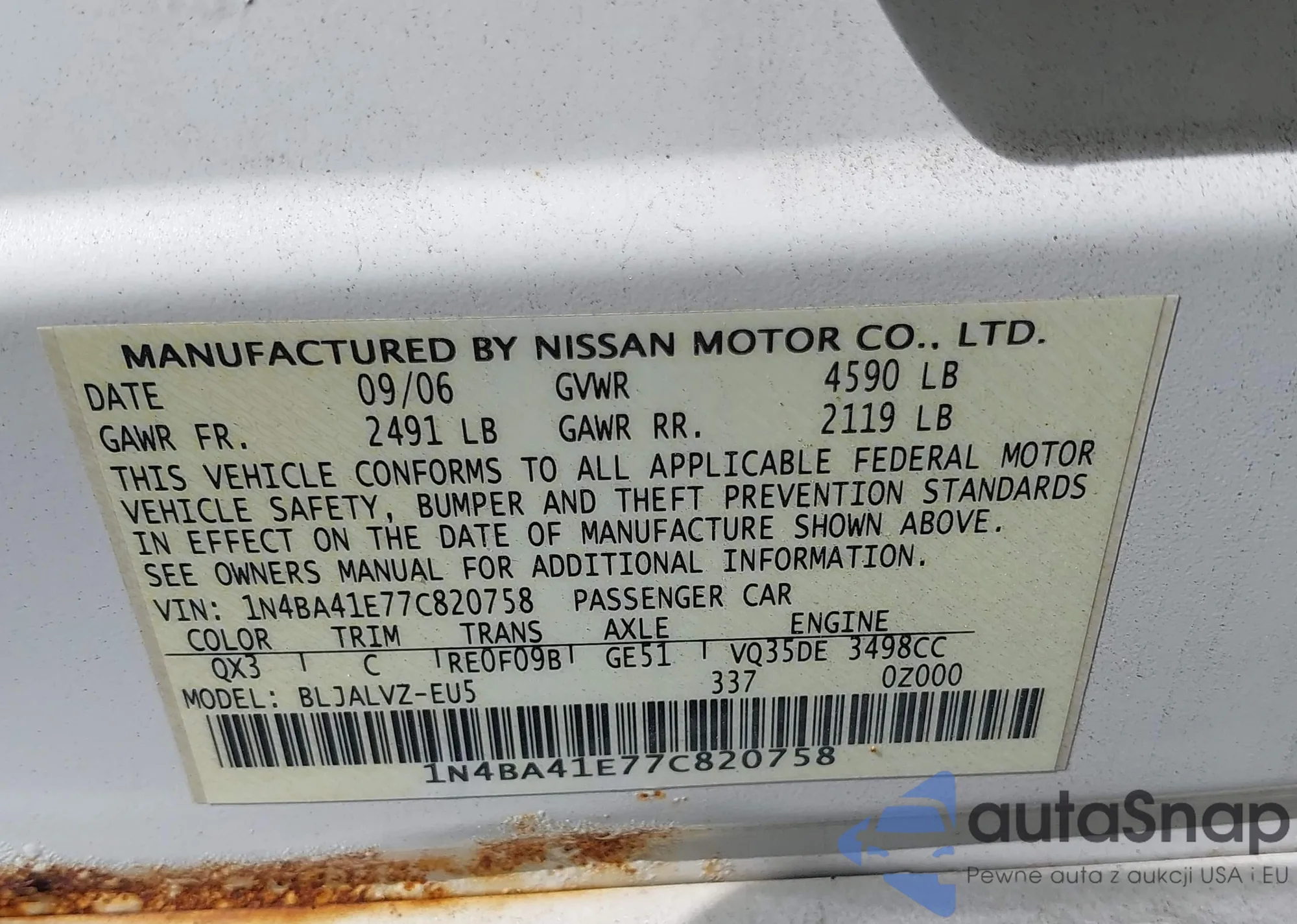 LOT: 42633675 VIN: 1N4BA41E77C820758