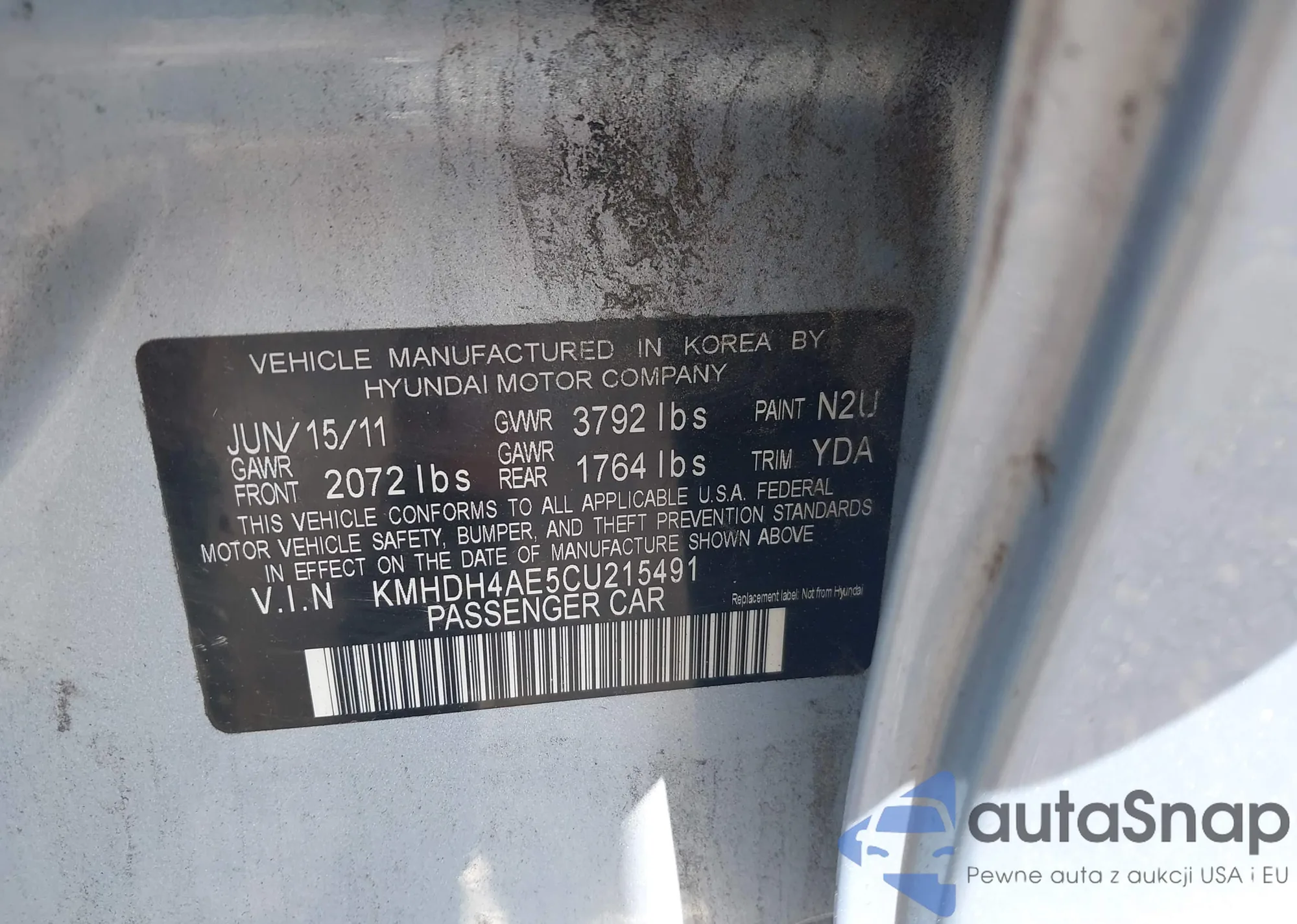 • VIN KMHDH4AE5CU215491