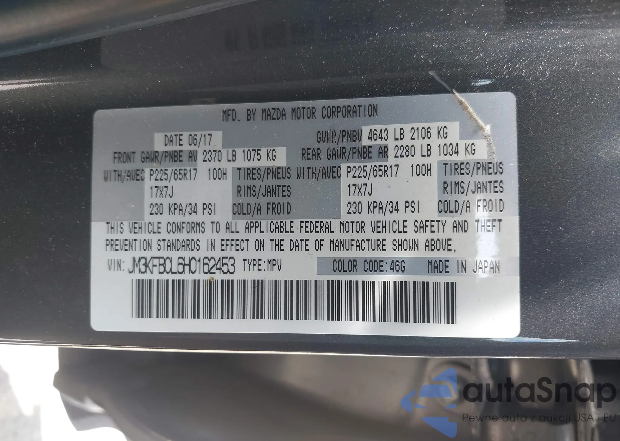 LOT: 42329139 VIN: JM3KFBCL6H0162453