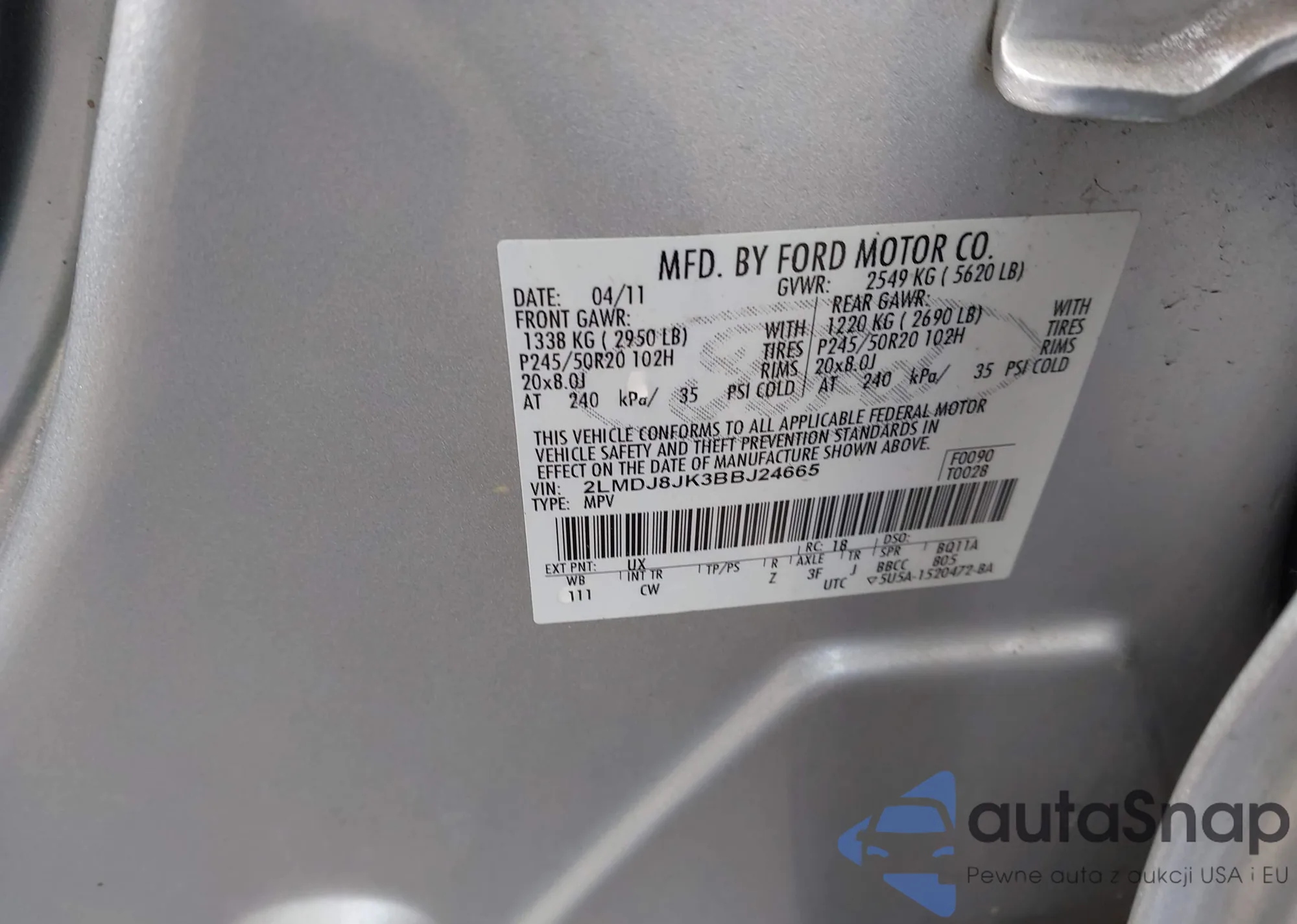 • VIN 2LMDJ8JK3BBJ24665