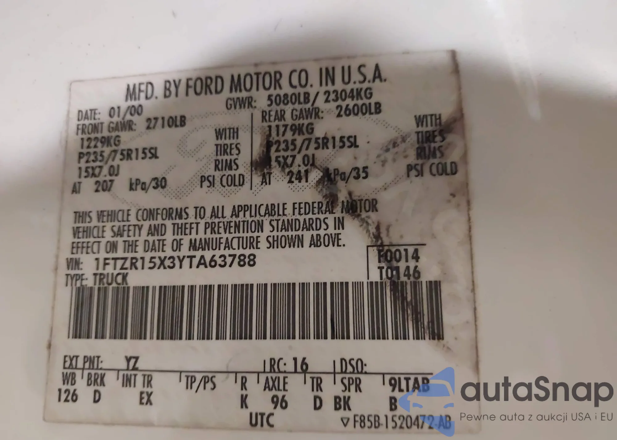 LOT: 42553944 VIN: 1FTZR15X3YTA63788