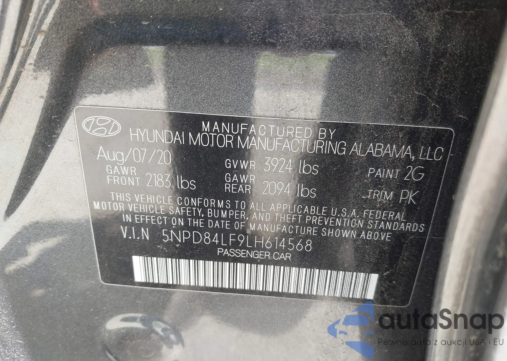 • VIN 5NPD84LF9LH614568