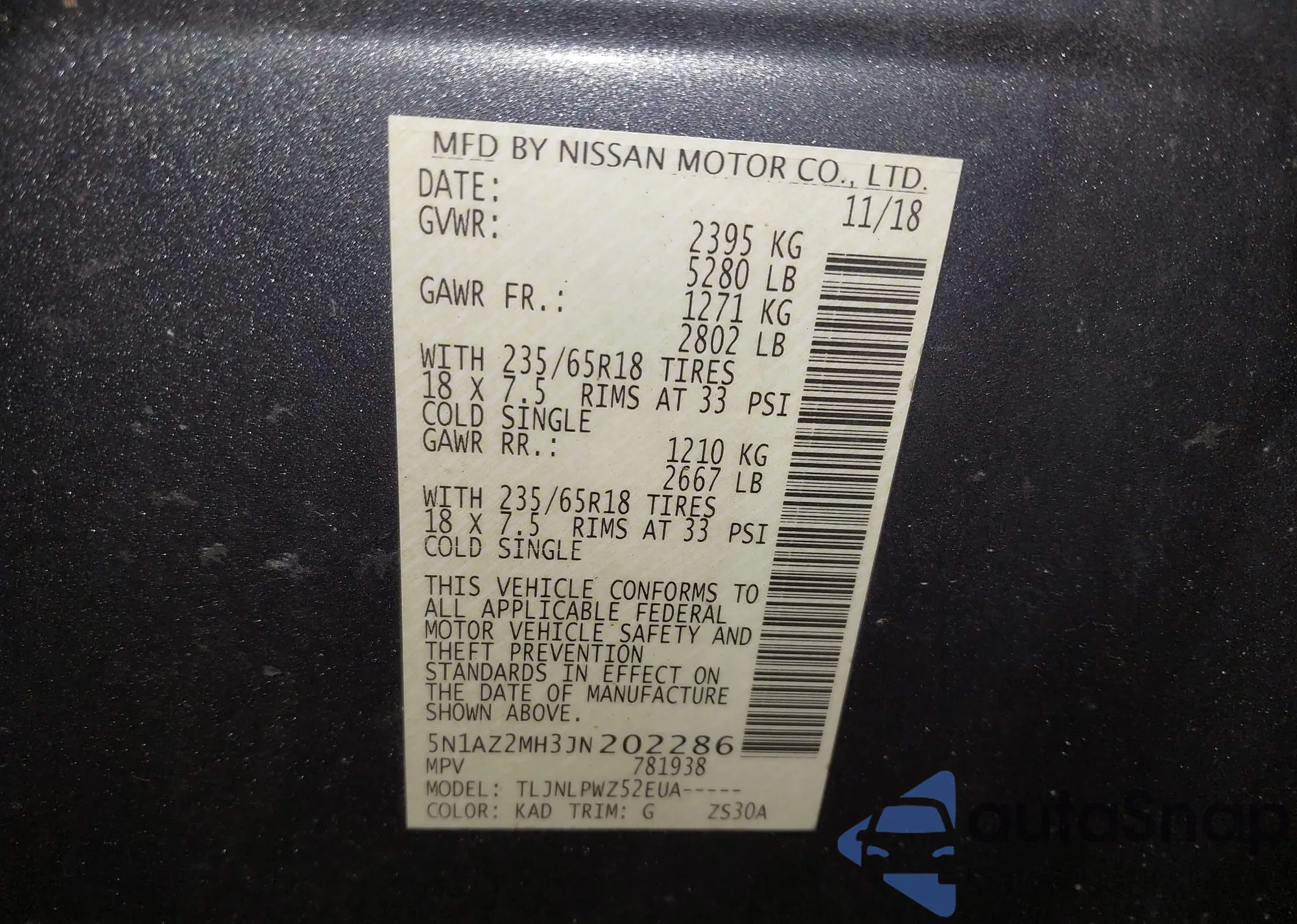 • VIN 5N1AZ2MH3JN202286