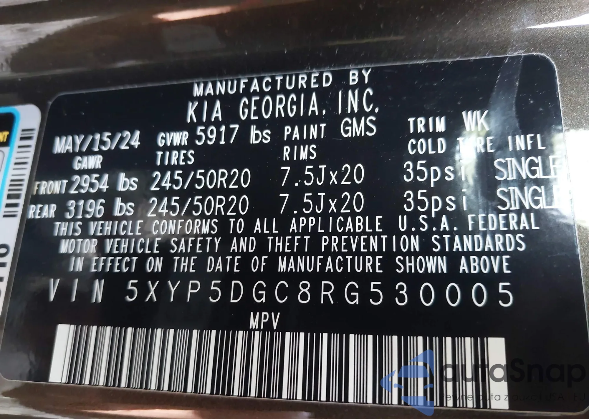 • VIN 5XYP5DGC8RG530005