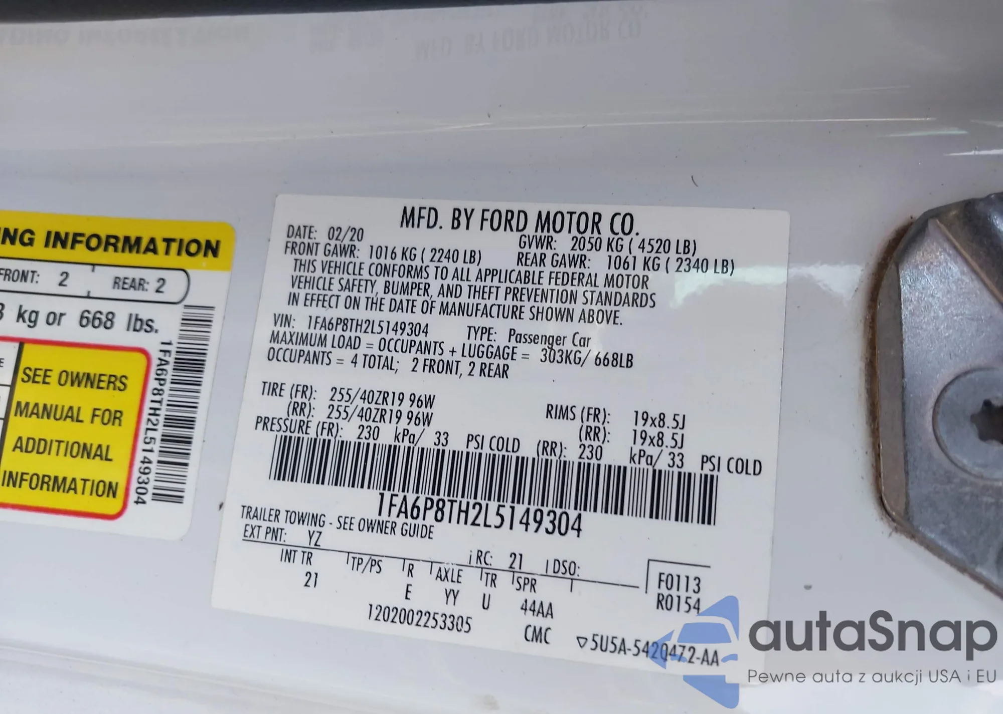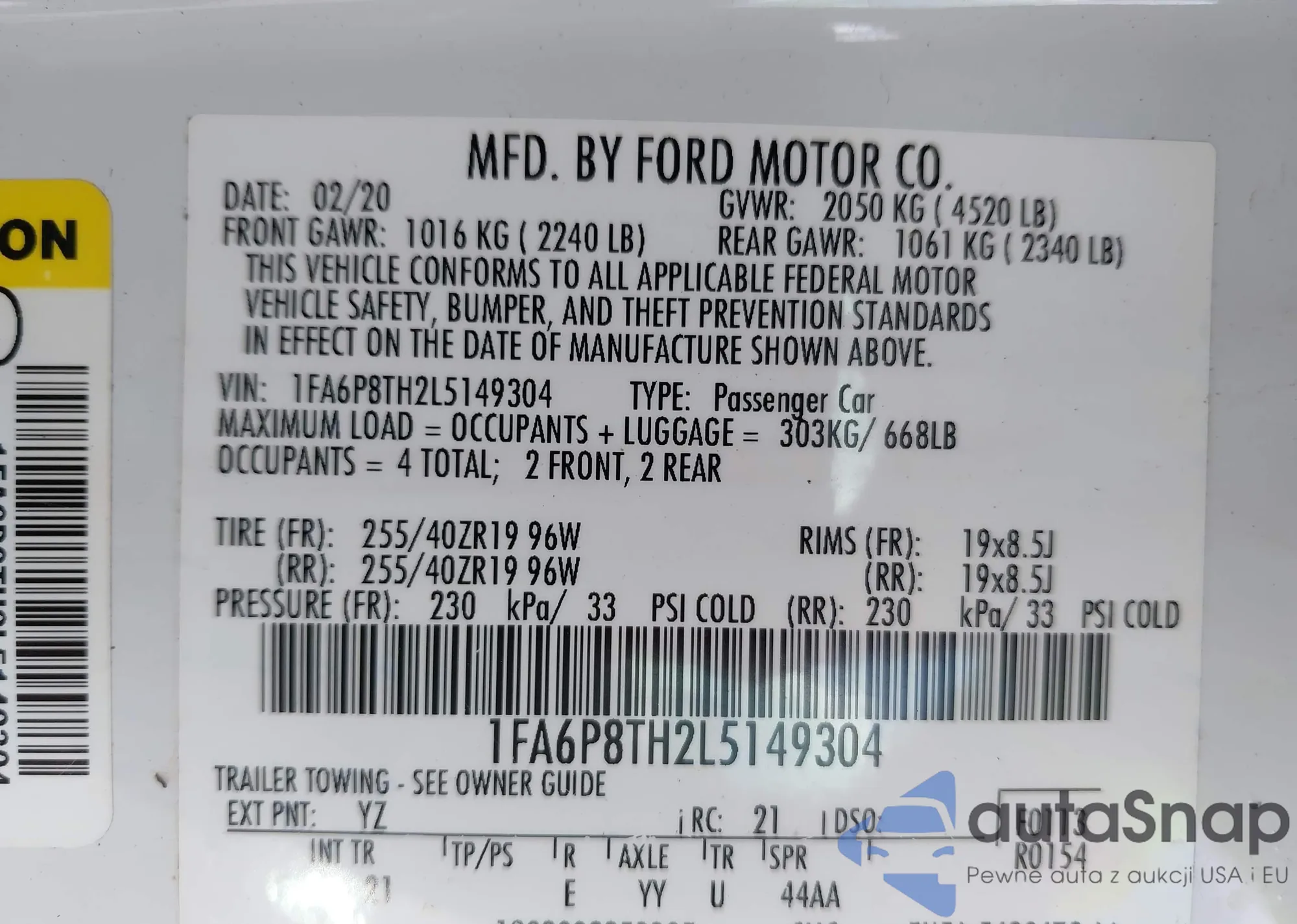 LOT: 42480098 VIN: JTEDW21AX60010753