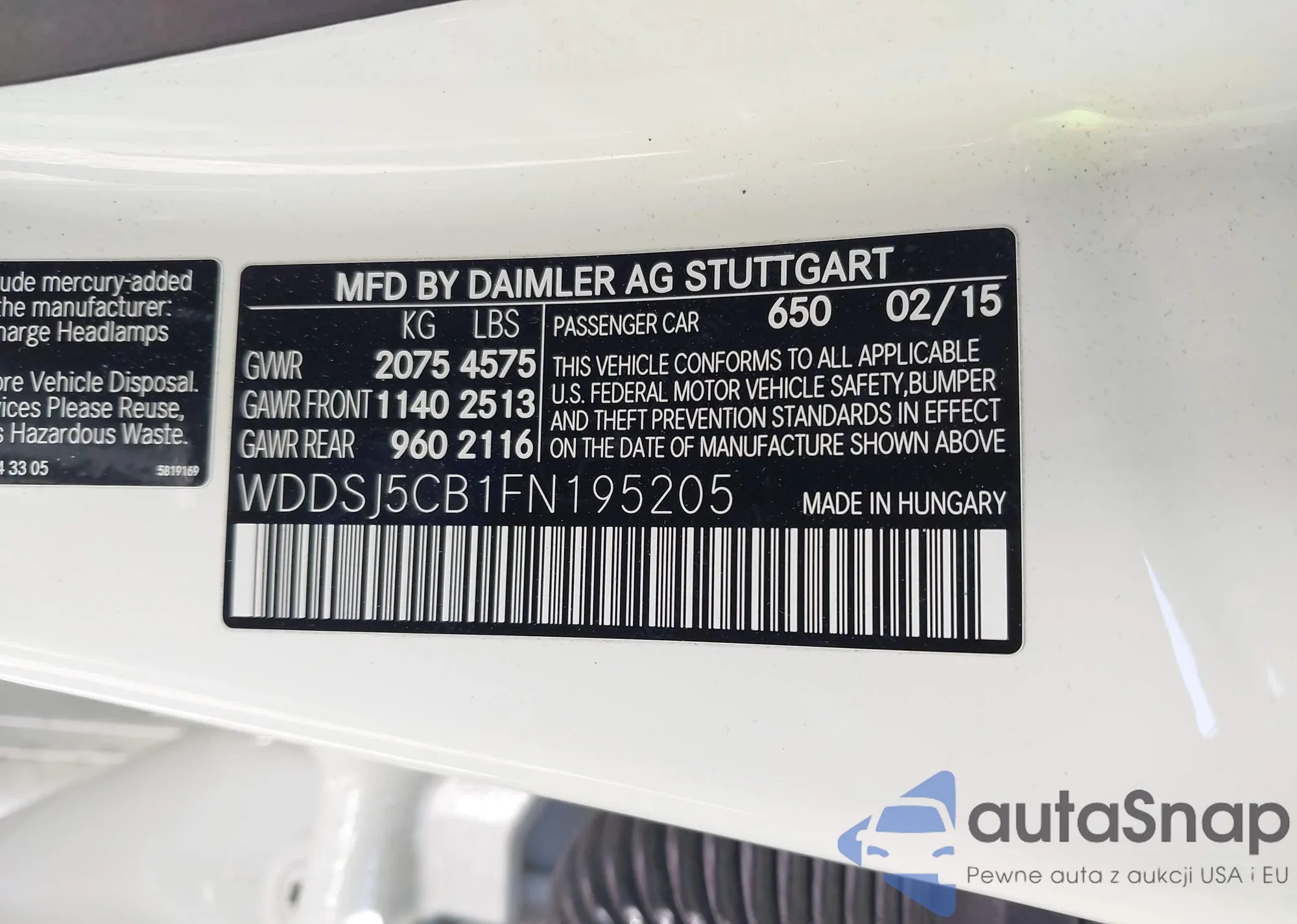 LOT: 42580658 VIN: WDBTK56G16T056141
