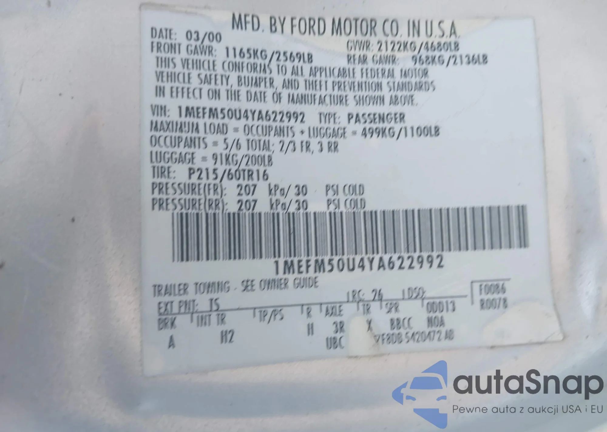 • VIN 1MEFM50U4YA622992