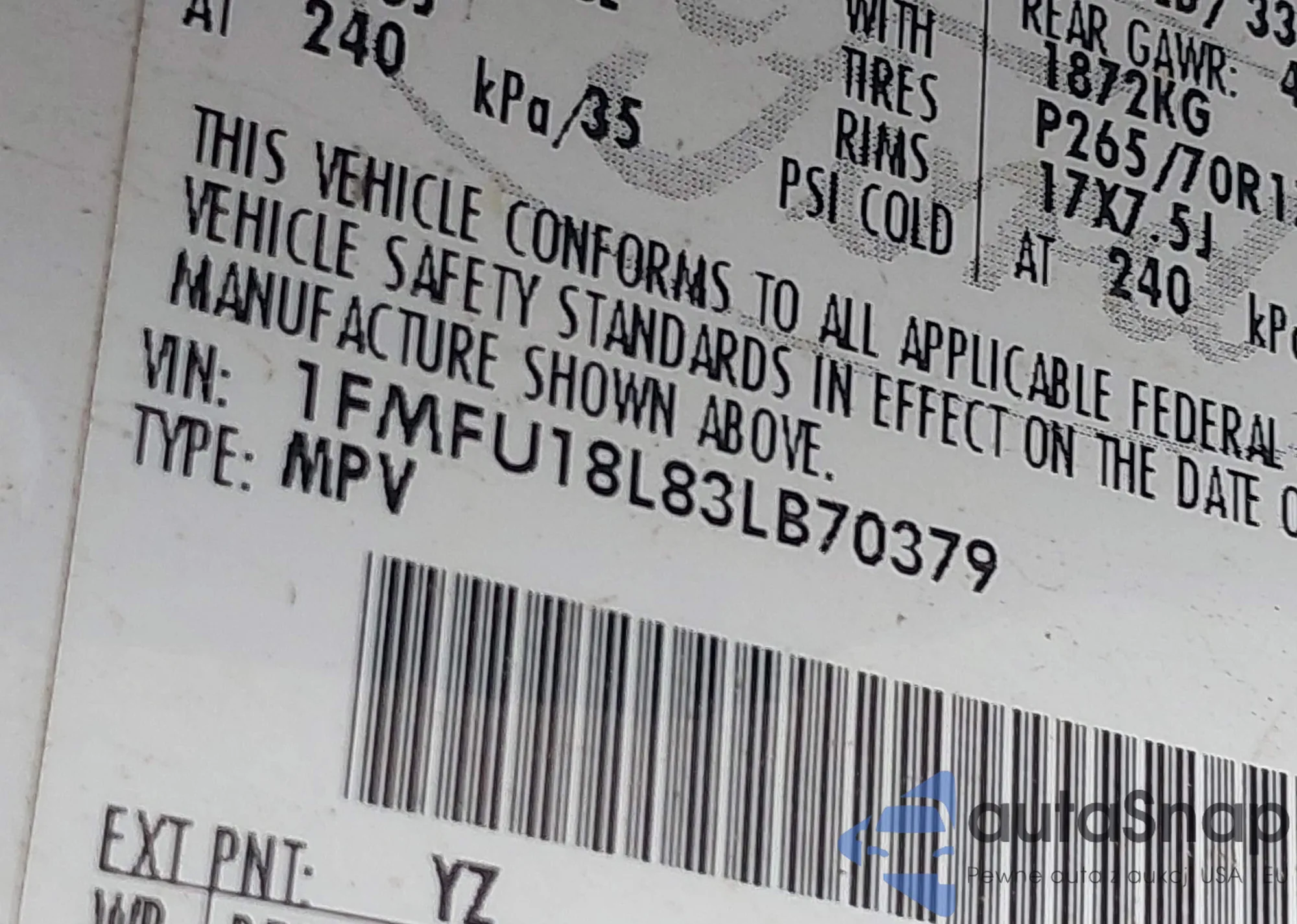 LOT: 42434935 VIN: 1FMFU18L83LB70379