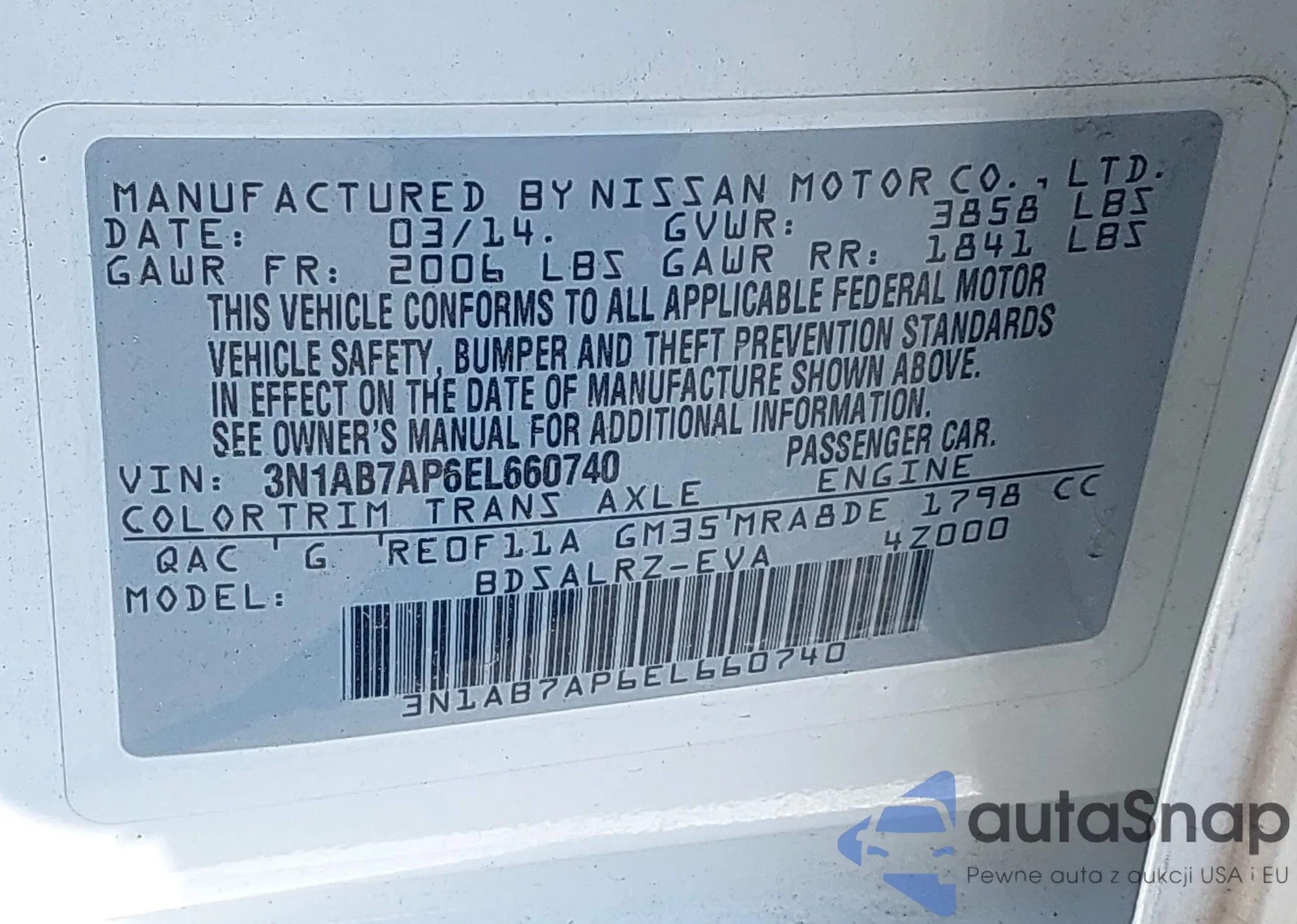 • VIN 3N1AB7AP6EL660740