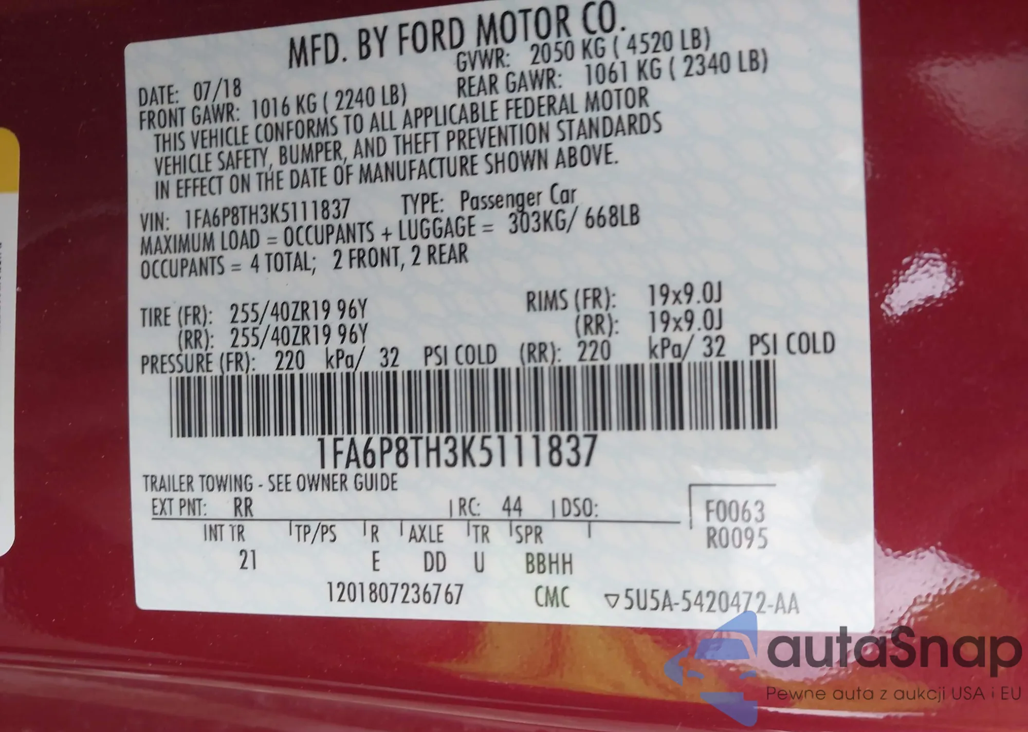 • VIN 1FA6P8TH3K5111837