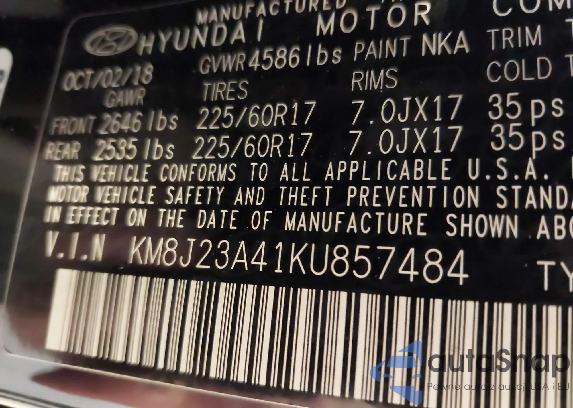 • VIN KM8J23A41KU857484