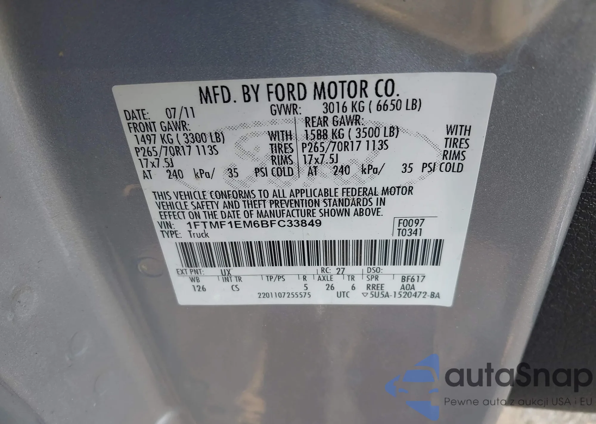 • VIN 1FT7W2A6XBEC33367