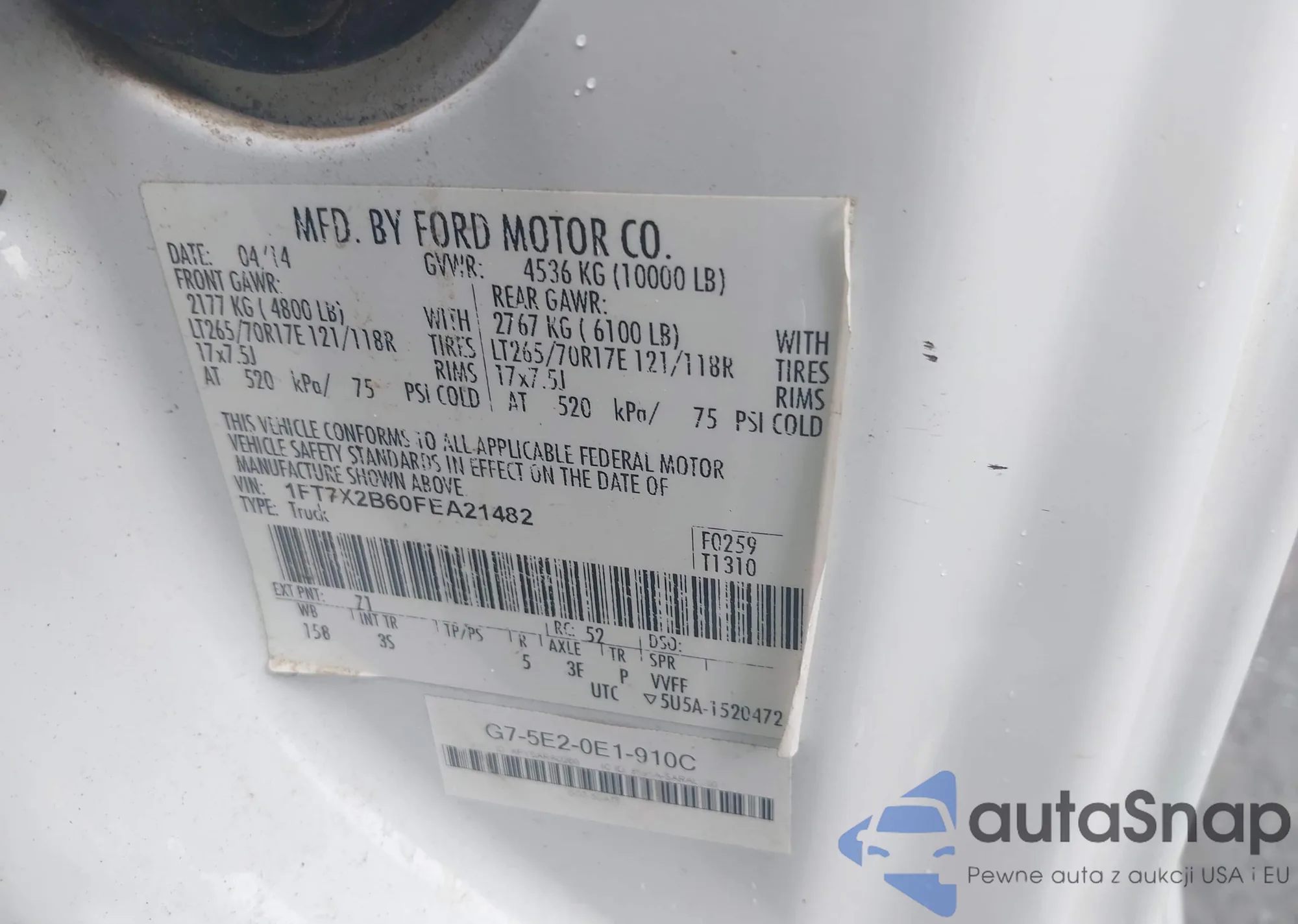 • VIN 1FT7X2B60FEA21482