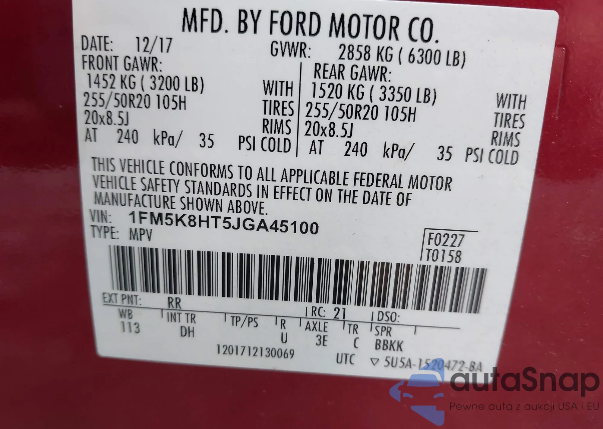 • VIN 1FMCU9HD3JUA80073