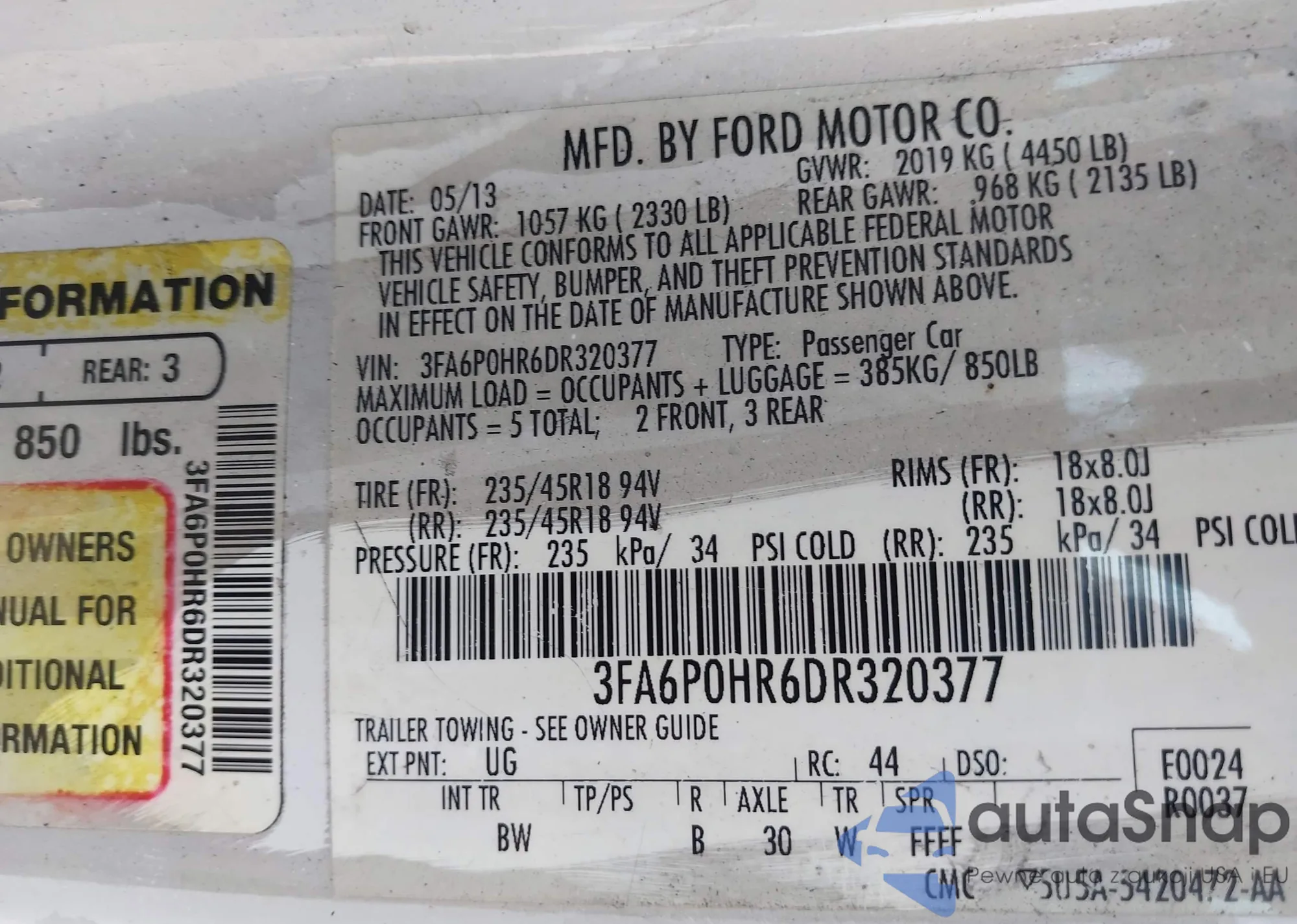 • VIN 3FA6P0HR6DR320377