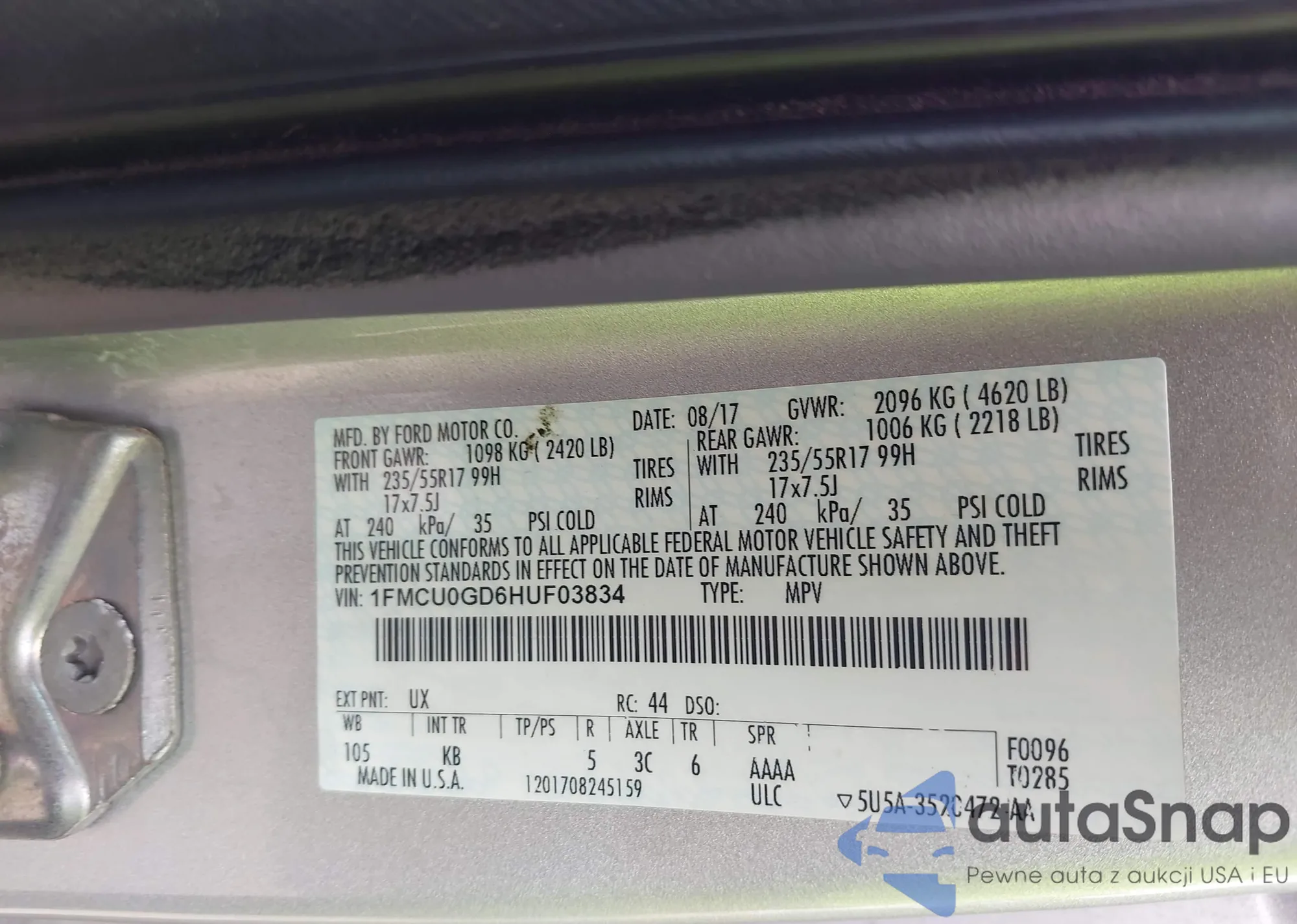 LOT: 42437969 VIN: 1FMCU0GD6HUF03834