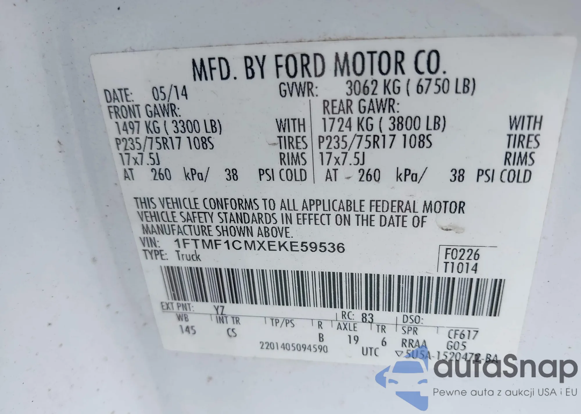 • VIN 1FTMF1CMXEKE59536