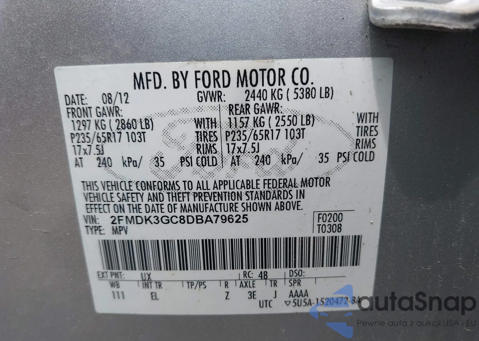 LOT: 42458270 VIN: 2FMDK3G97CBA03980