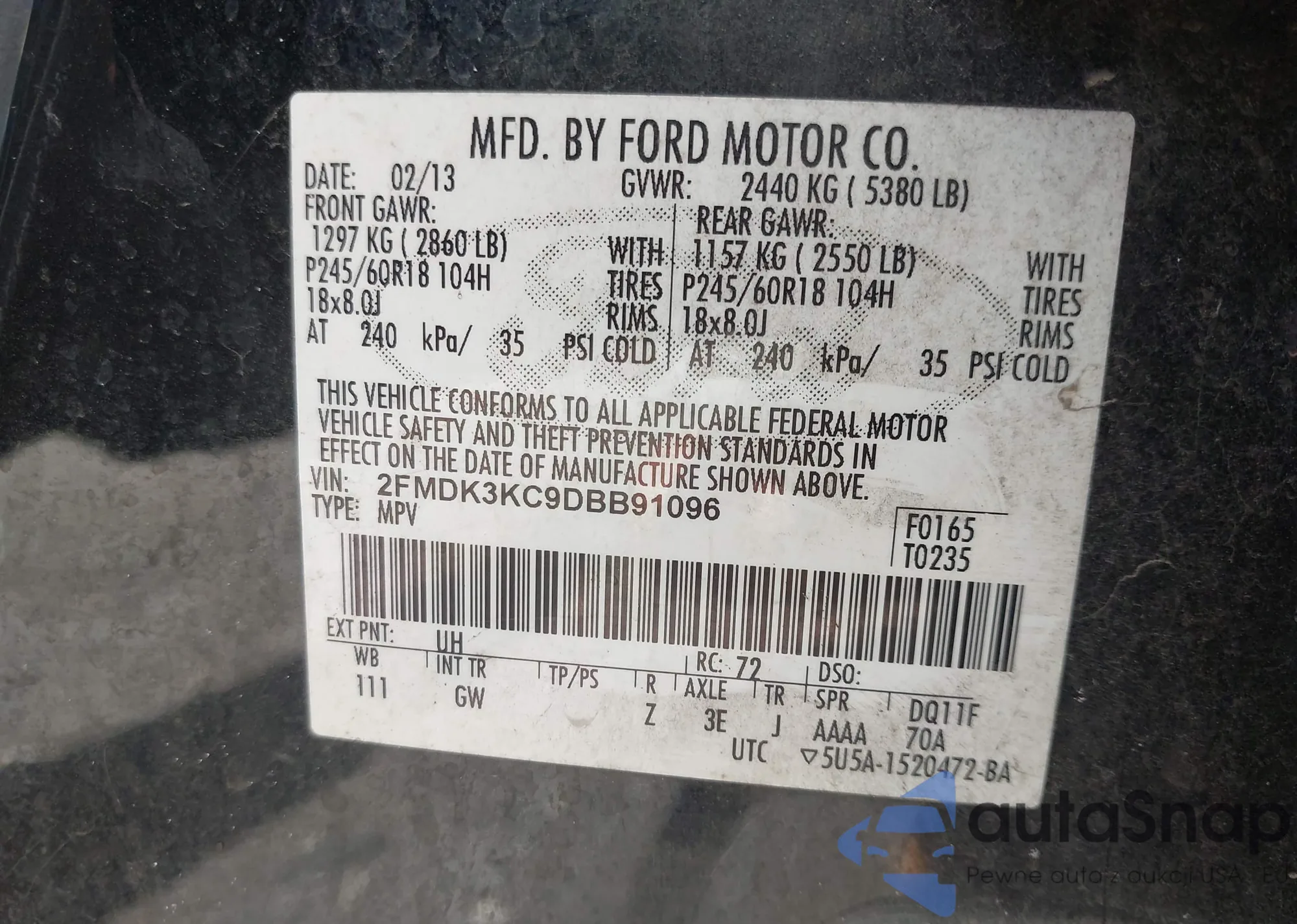 • VIN 2FMDK3KC9DBB91096