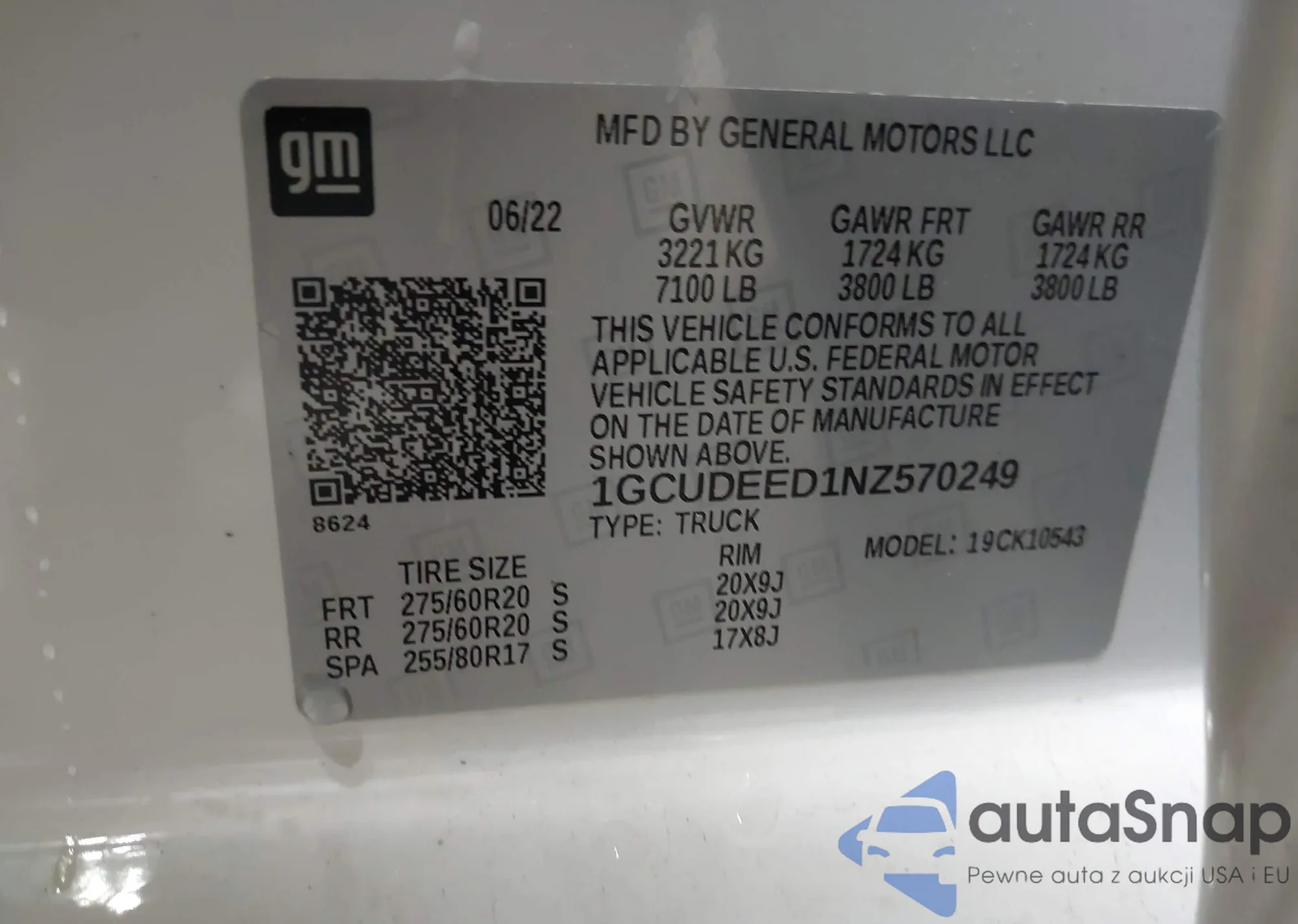 LOT: 42352952 VIN: 1GCUDEED1NZ570249
