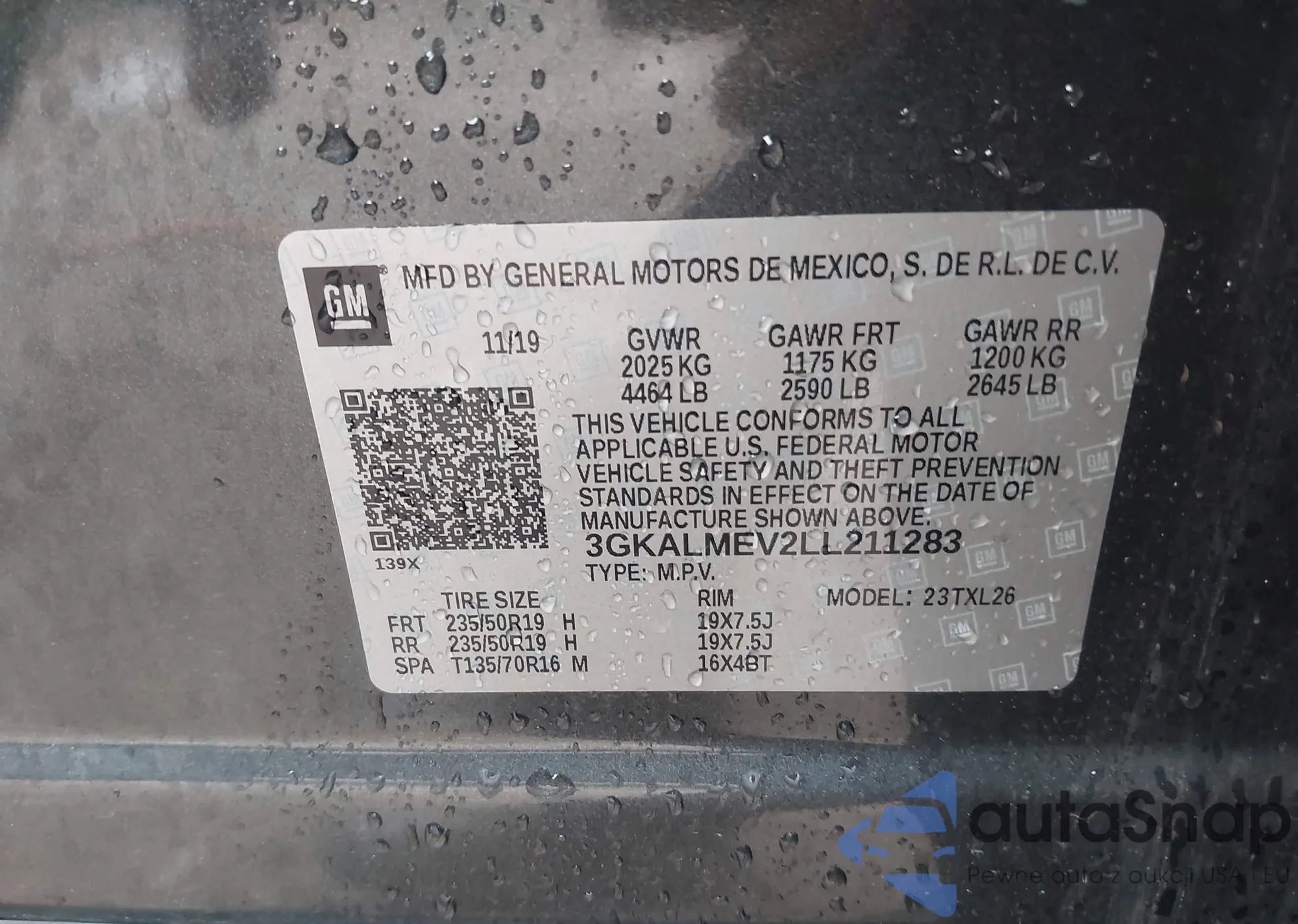 LOT: 41965299 VIN: 2GKFLSEK5H6310093