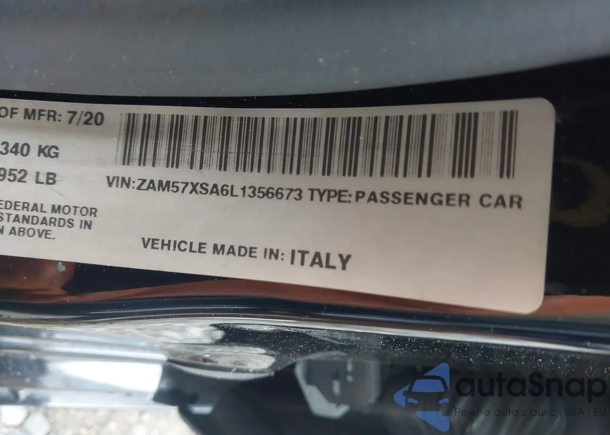LOT: 42388438 VIN: ZAM57XSA6L1356673