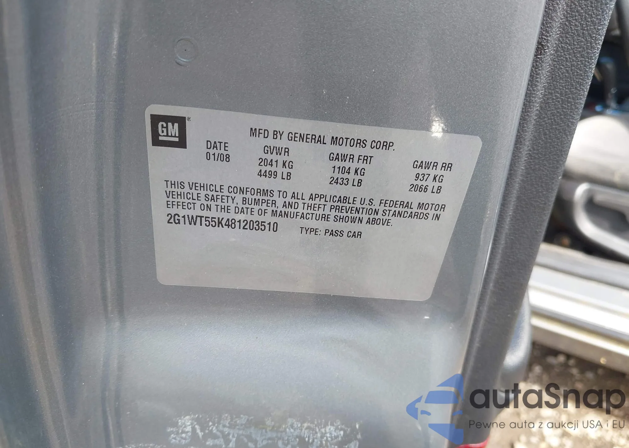 • VIN 9BWGK61J934021435