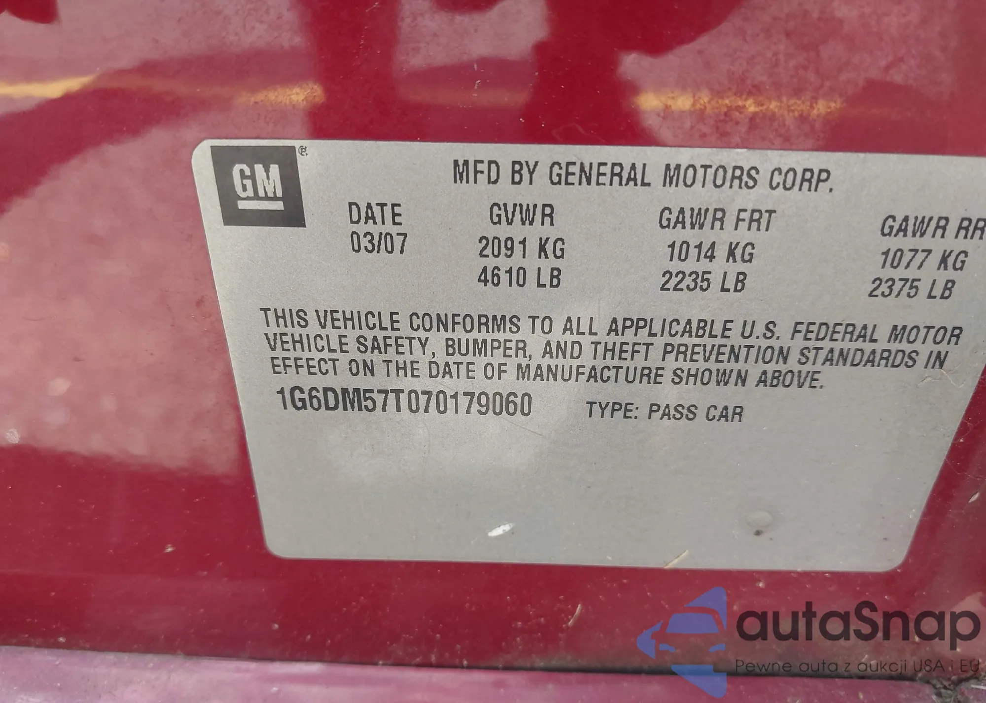• VIN 1G6DM57T070179060